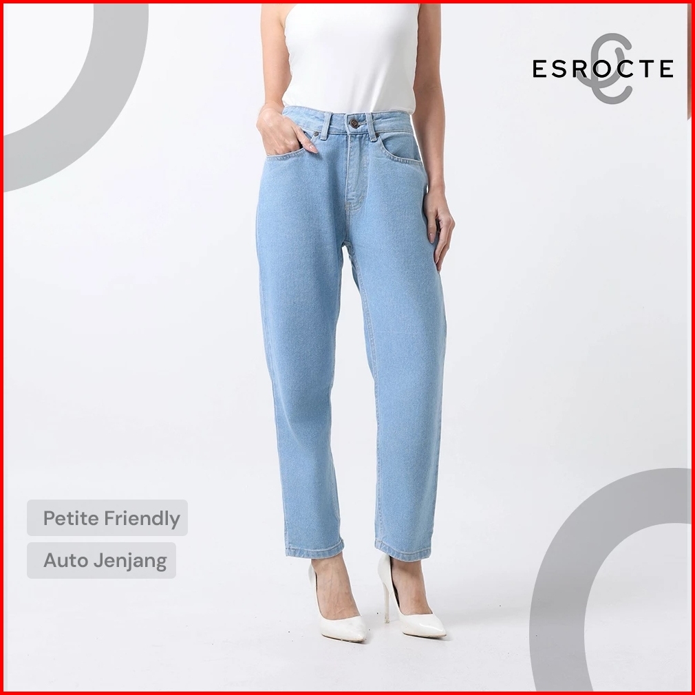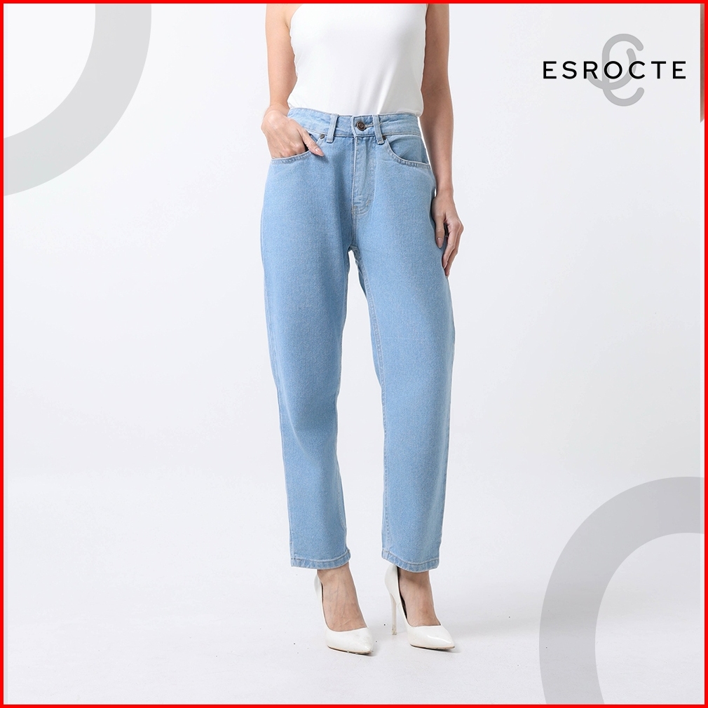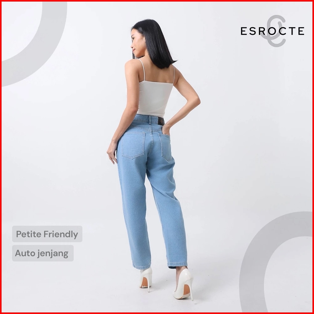 Esrocte Aurea Pants Celana Boyfirend Mom Jeans Wanita High-waist Biru Folder 2638 New Size