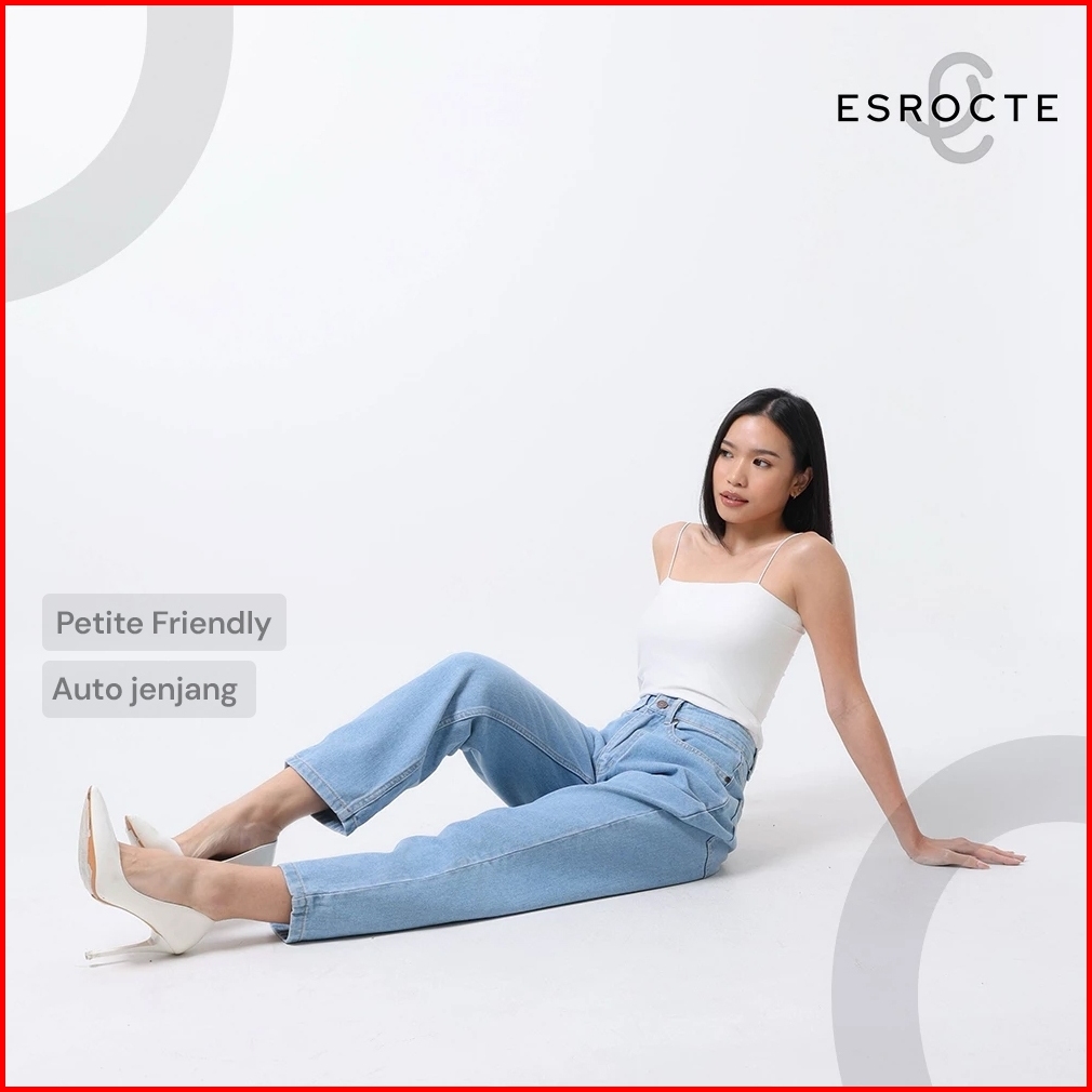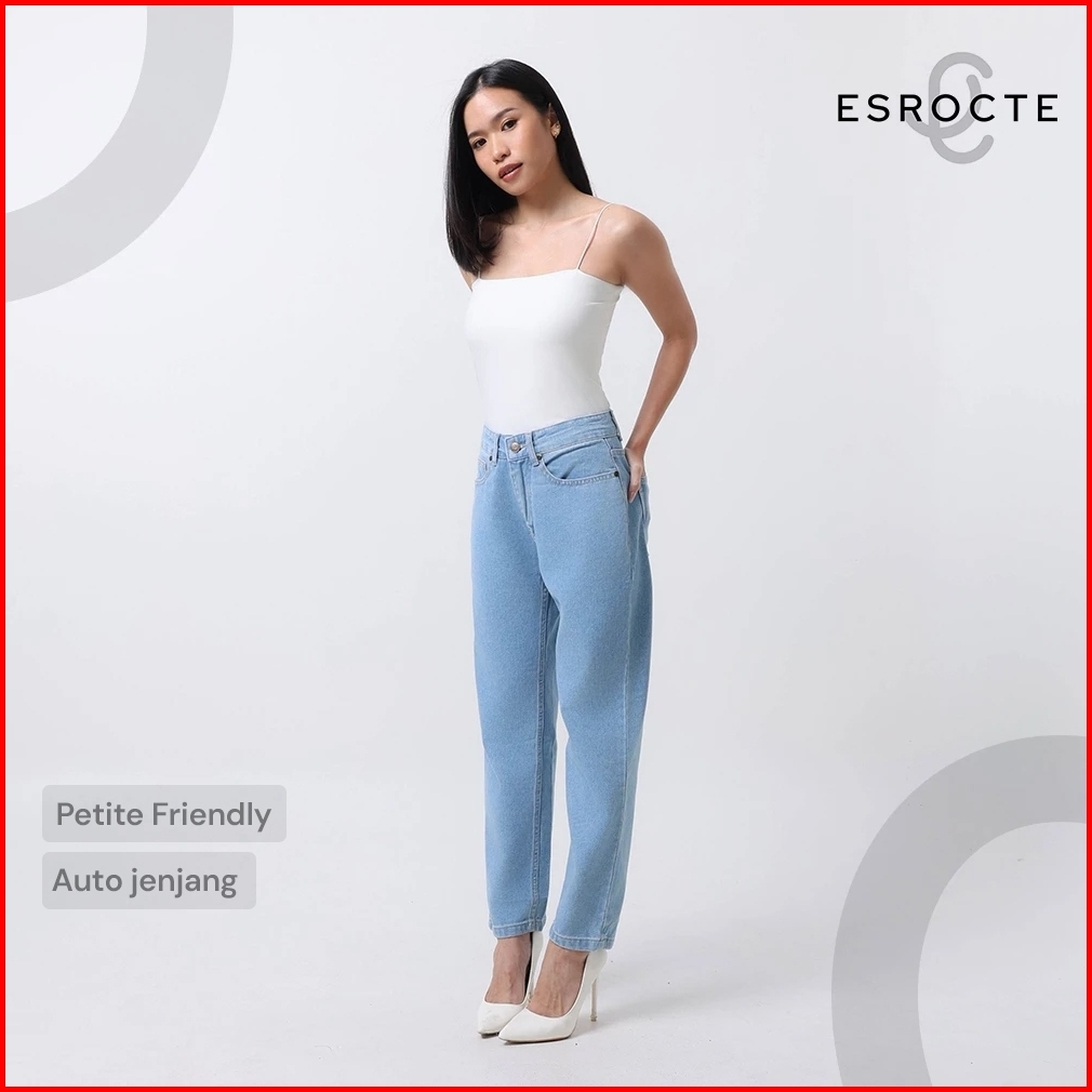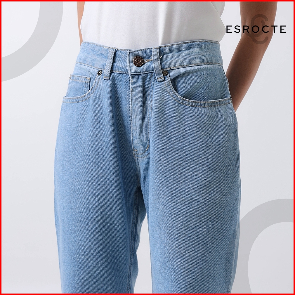 Esrocte Aurea Pants Celana Boyfirend Mom Jeans Wanita High-waist Biru Folder 2638 New Size