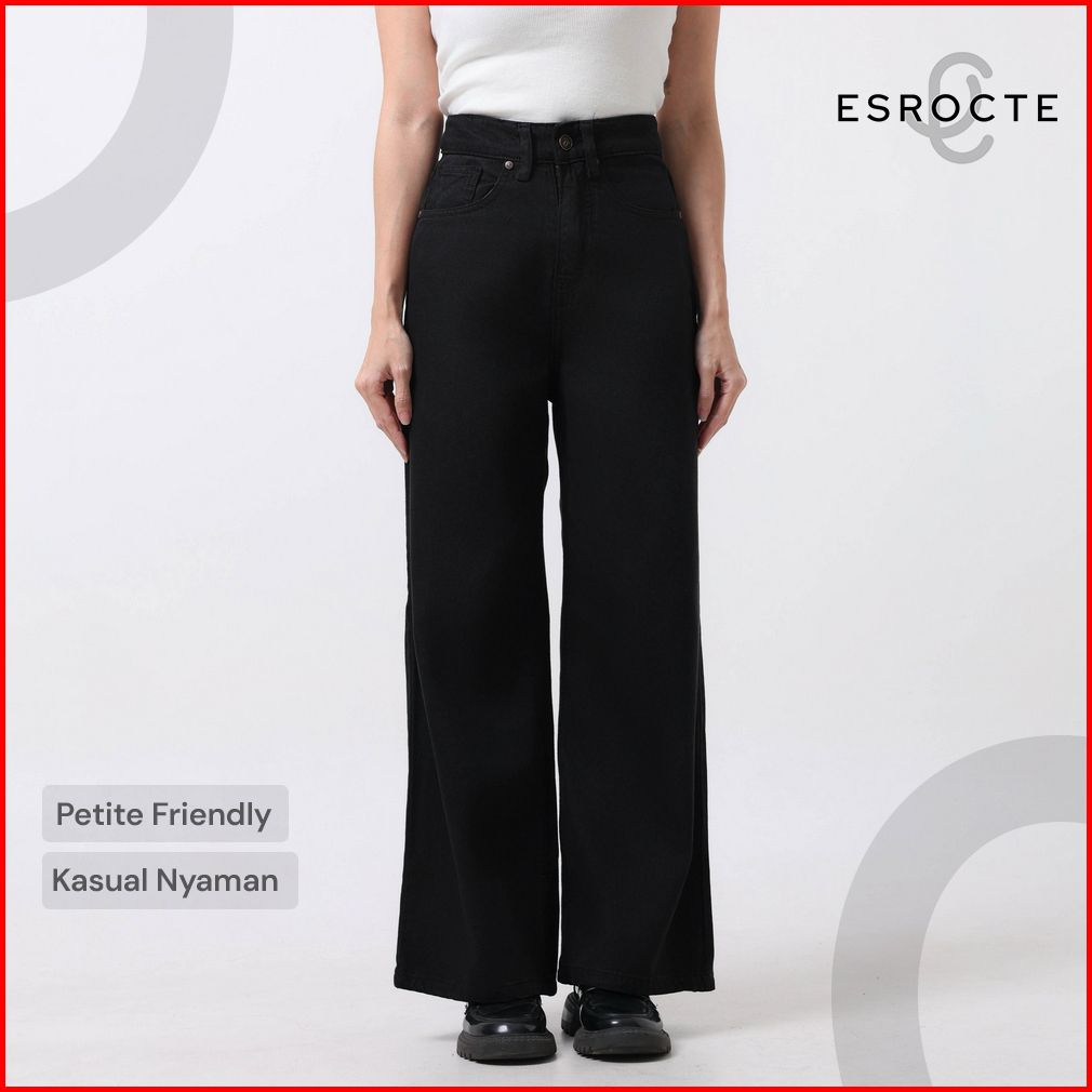 Esrocte Naura Pants Celana Kulot Jeans High-waist Wanita Hitam 2638 New Size