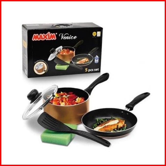 Panci Maxim Venice Set 5 Pcs Peralatan Masak Frypan Spatula Sponge Free Packing Bubble