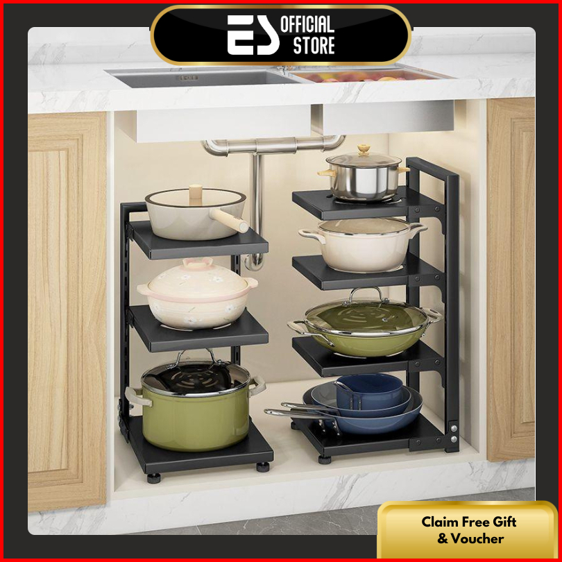 Es Rak Susun Bawah Wastafel Rak Tingkat Dan Beroda Rak Penyimpanan Adjustable Peralatan Rumah Dapur
