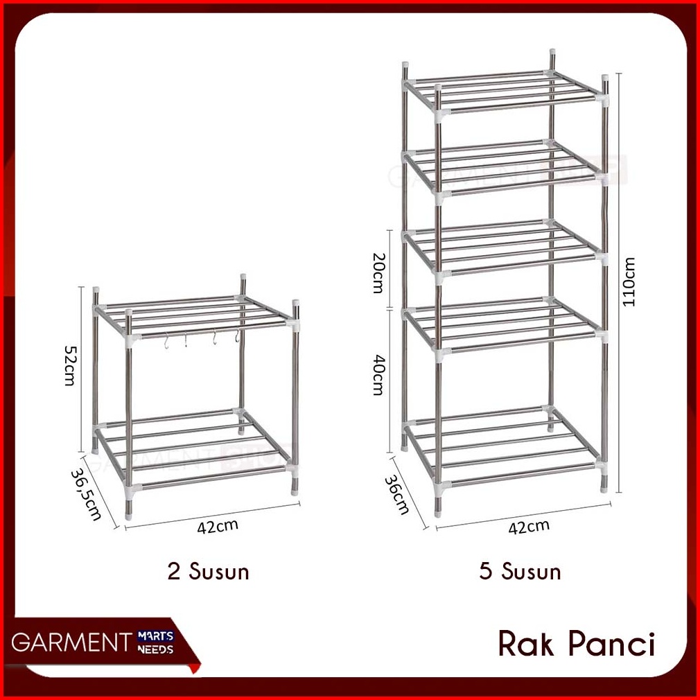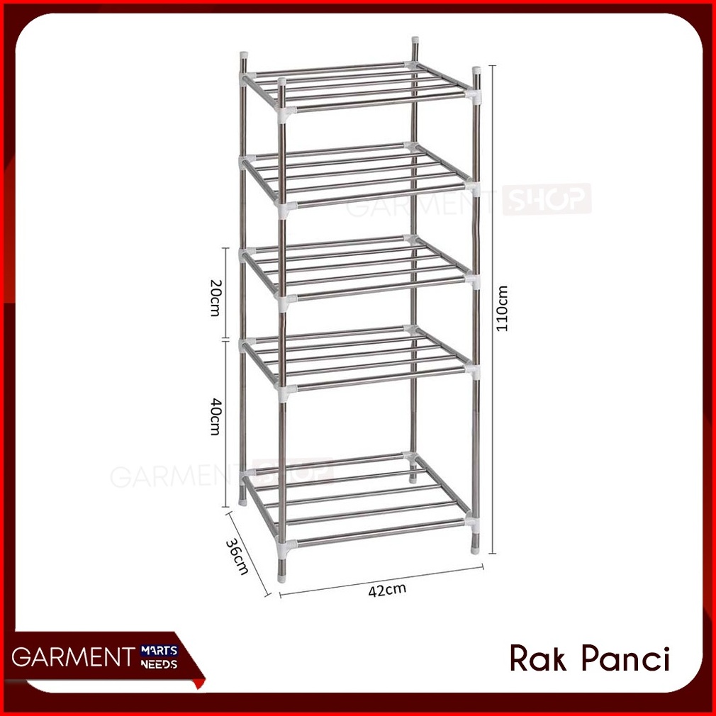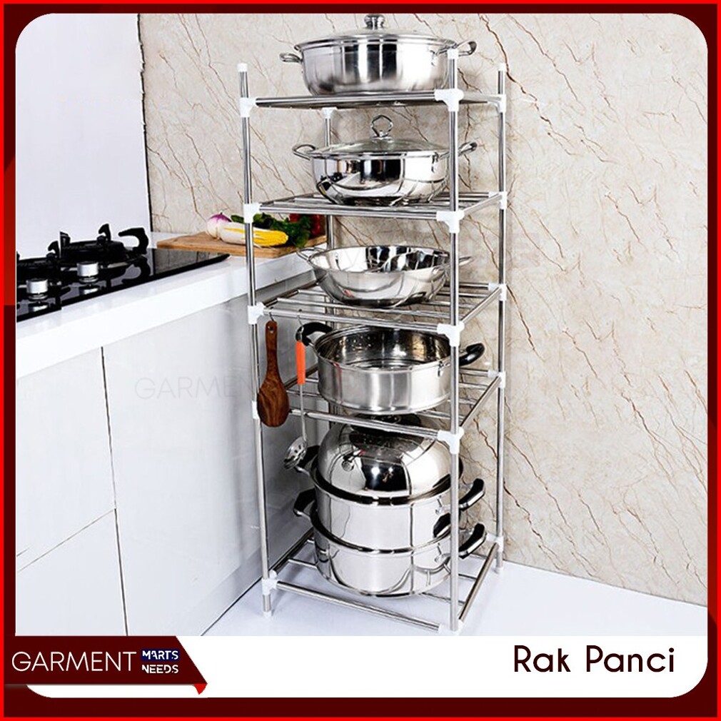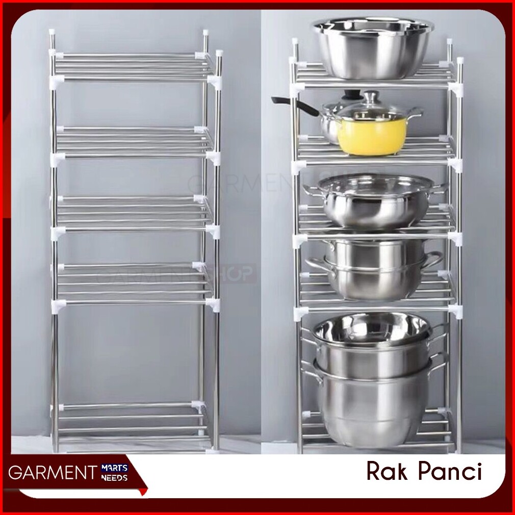 Rak Dapur Tempat Penyimpanan Panci Wajan Kamar Mandi Serbaguna 5 Susun Stainless Steel