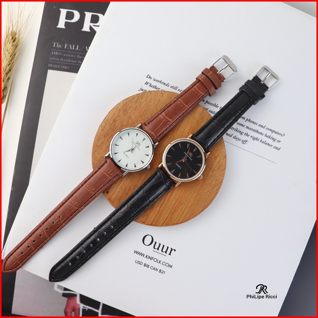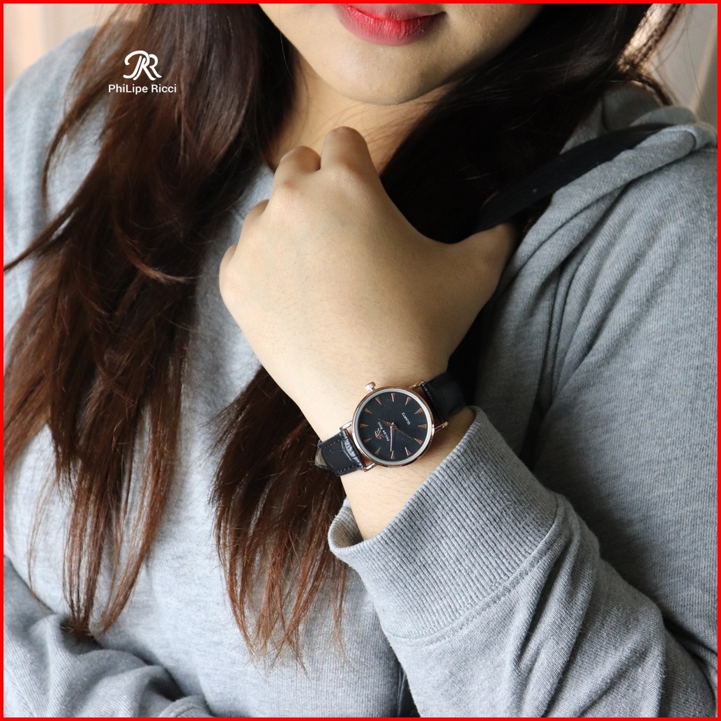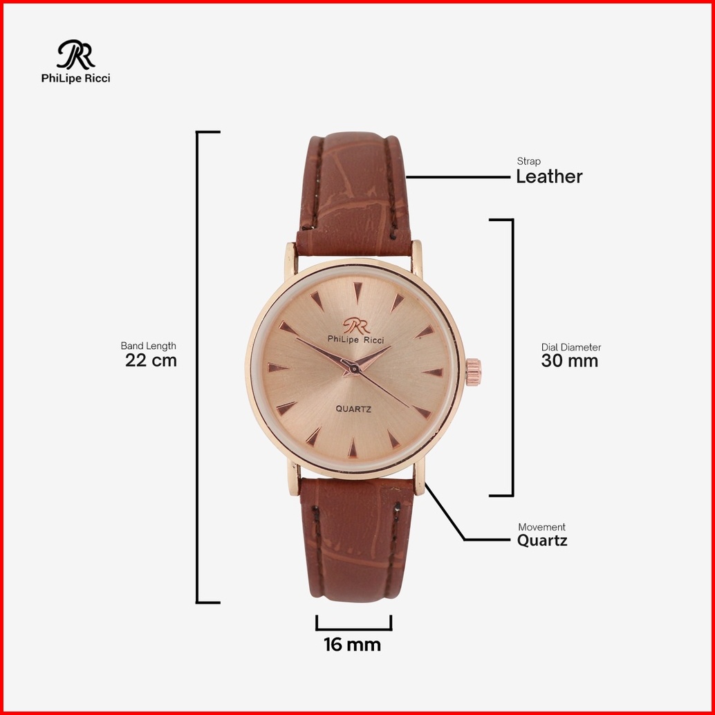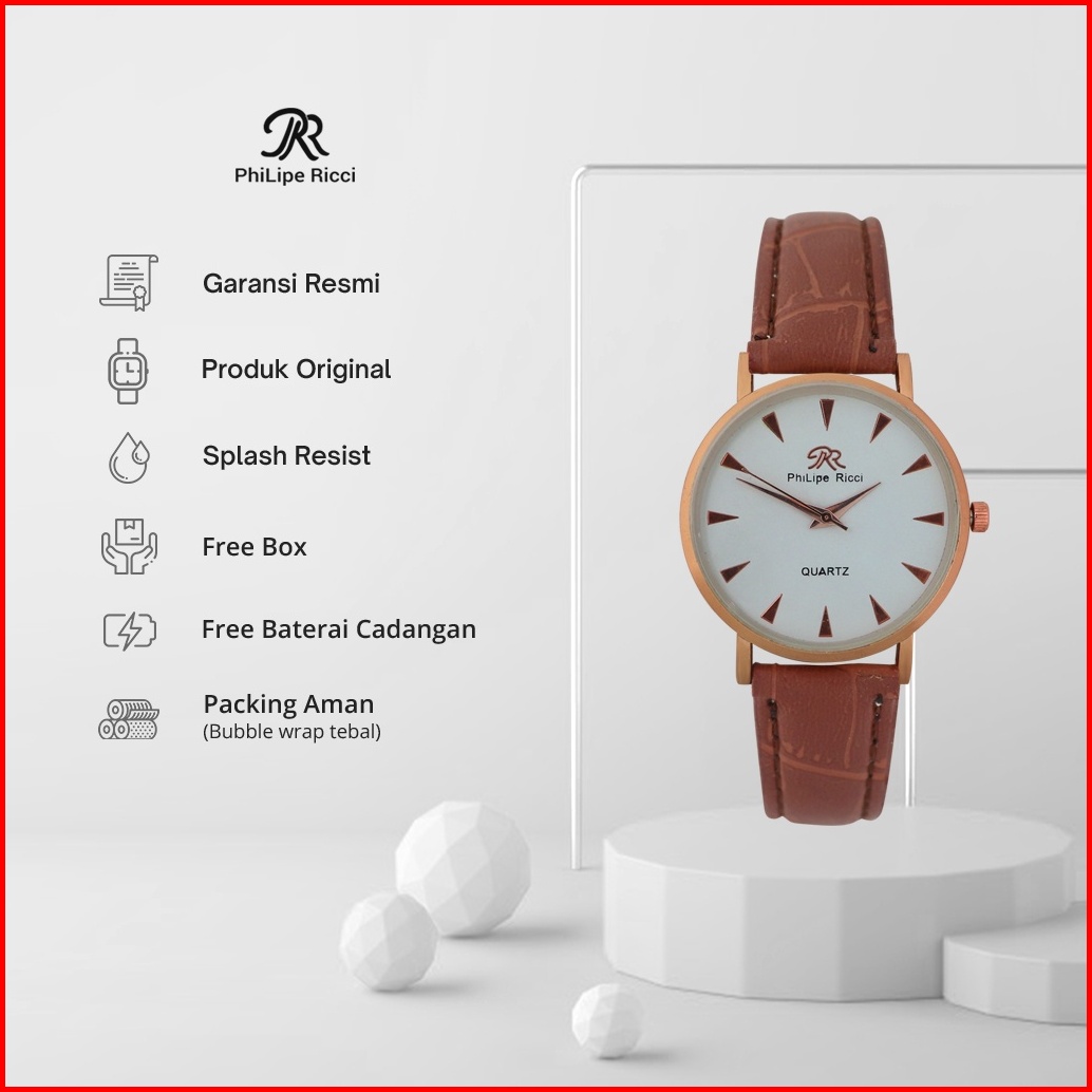 Philipe Ricci Jam Tangan Wanita Analog Diameter Kecil Strap Tali Kulit Model Minimalis Simpel Wkob14 Free Box
