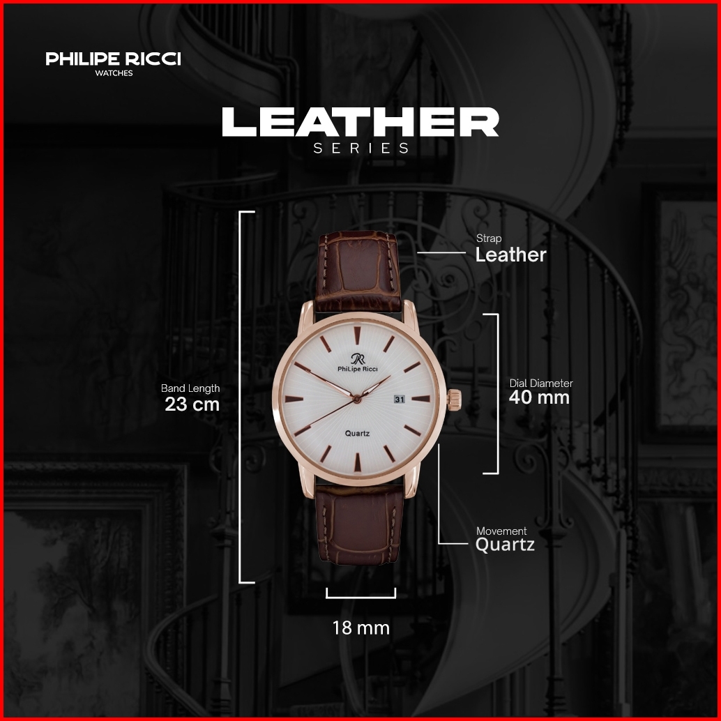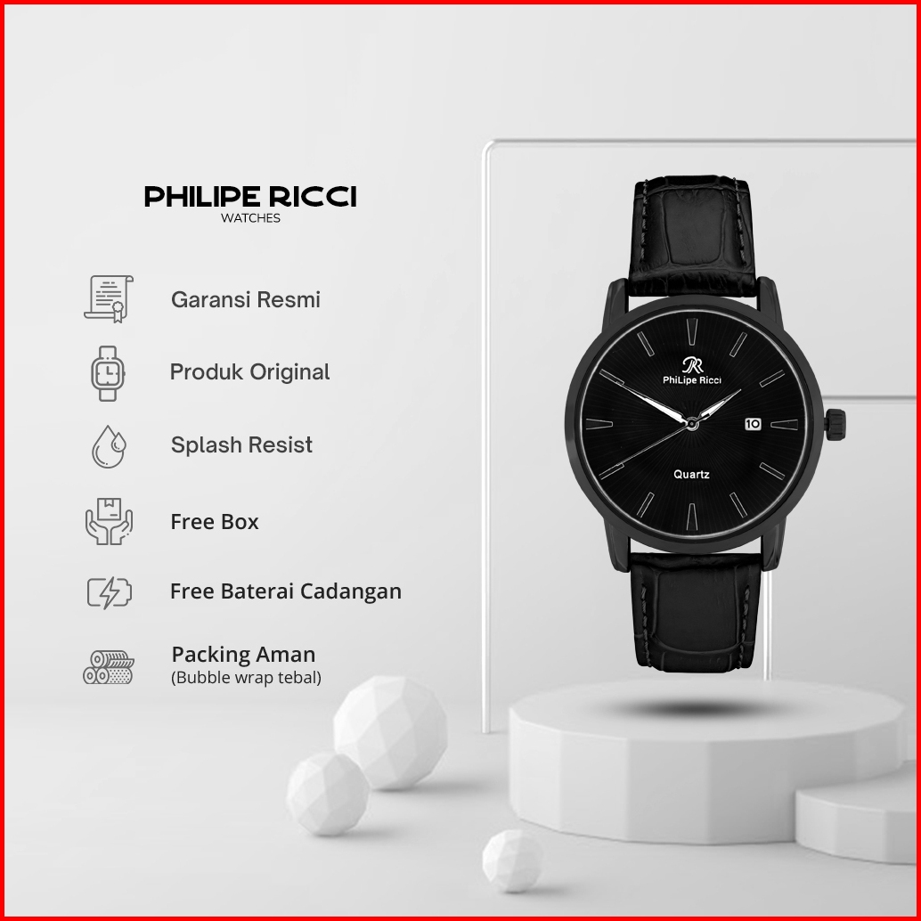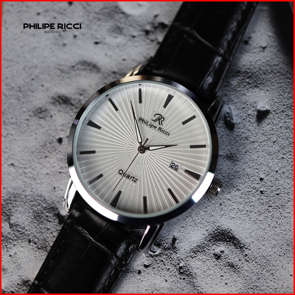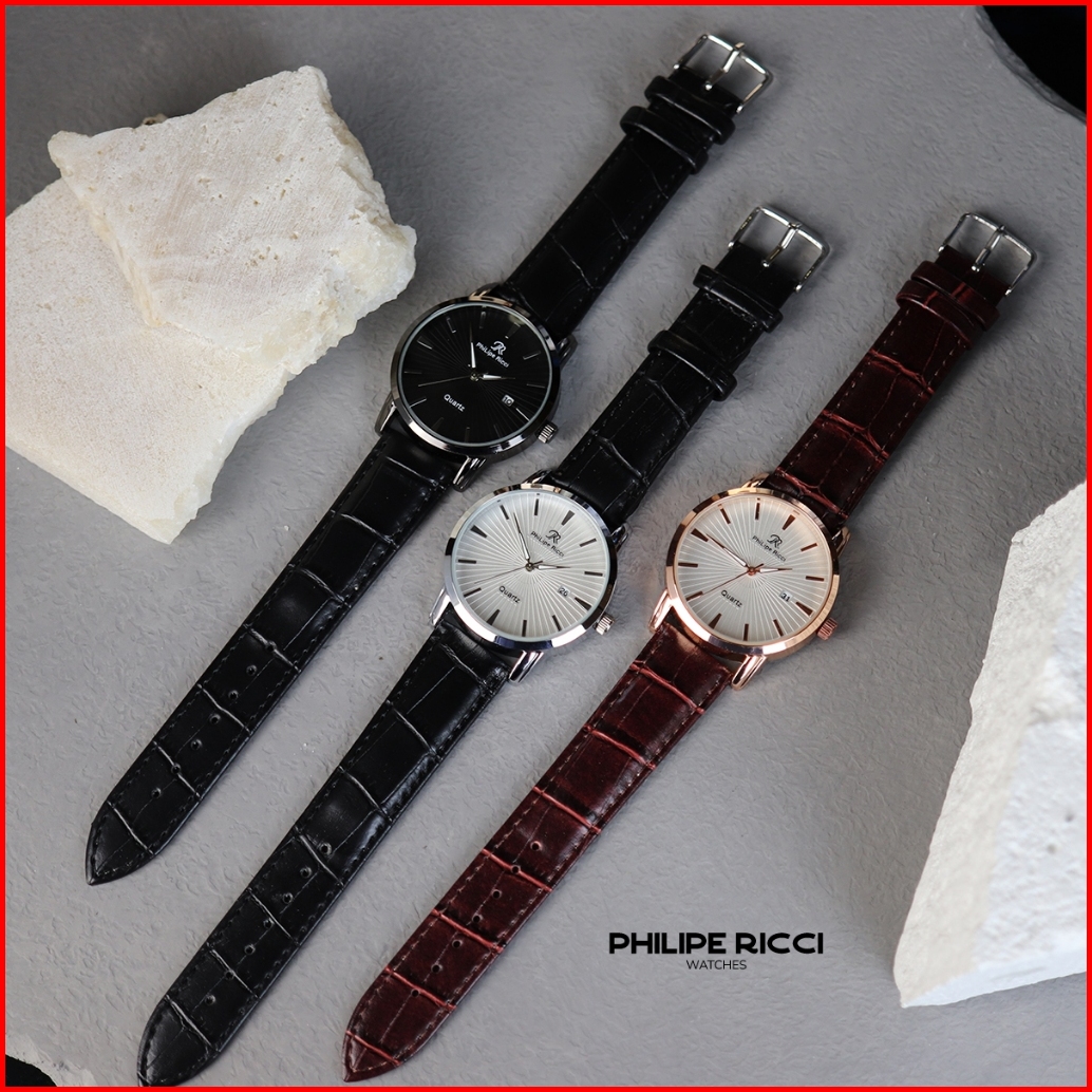 Philipe Ricci Jam Tangan Pria Kulit Analog Quartz Strap Leather Dial Bulat Besar Model Terbaru 4237 Man Watches Splash R