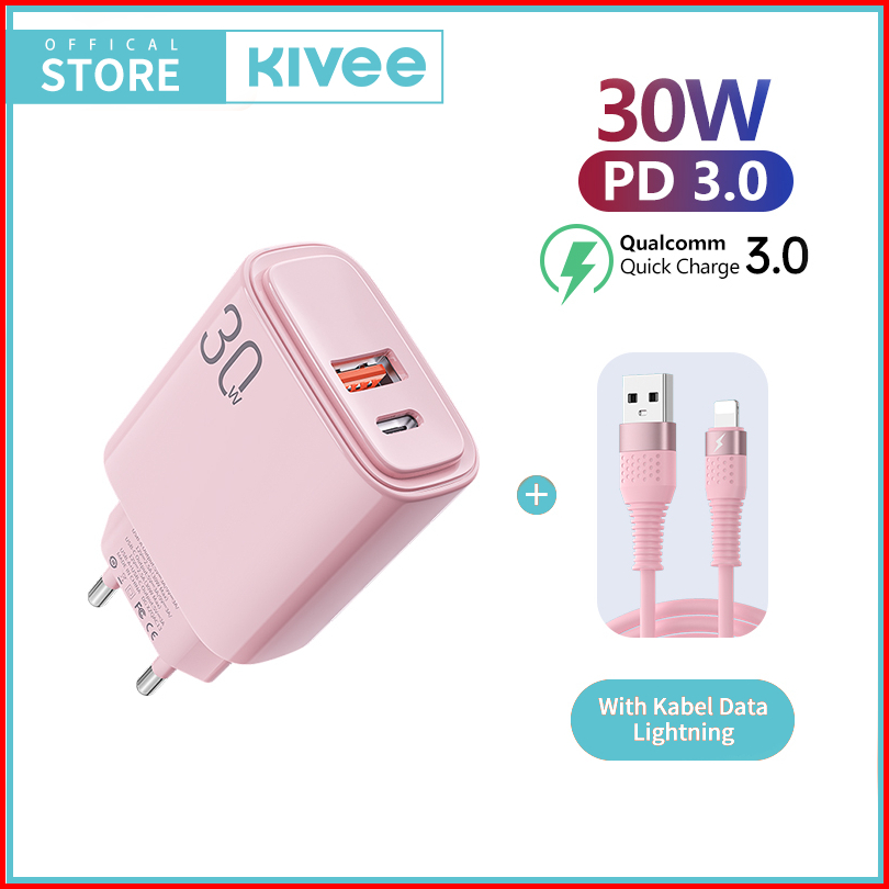 Hot Kivee Charger Iphone Fast Charging 30w Dual Port Macaron For Samsung Xiaomi