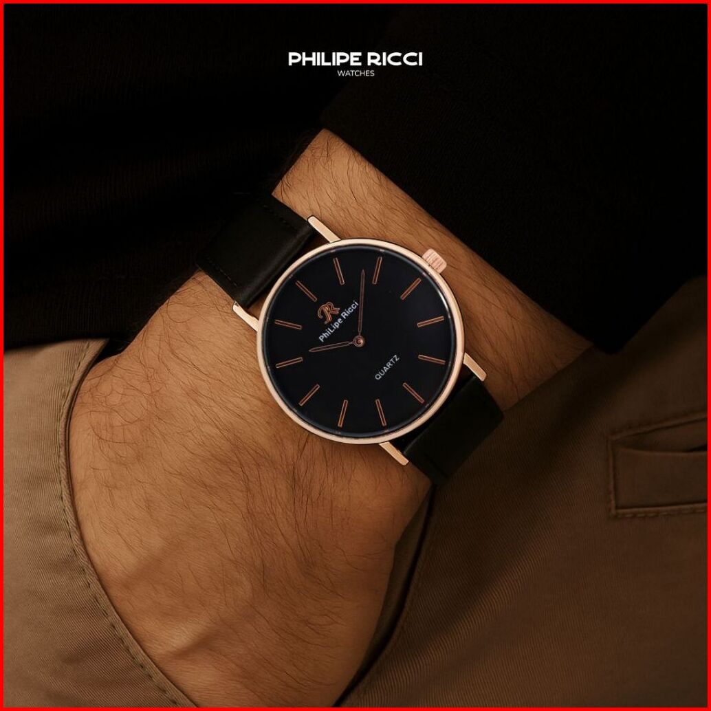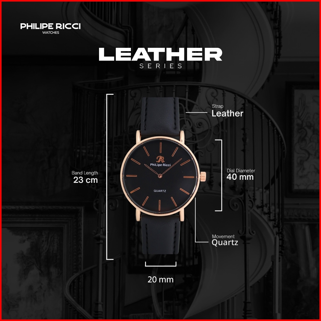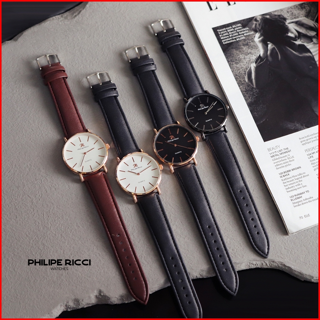 Philipe Ricci Jam Tangan Pria 100 Original Tipis Tali Kulit Quartz Cowok Kasual Analog Dial Bulat Strap Leather Model Si