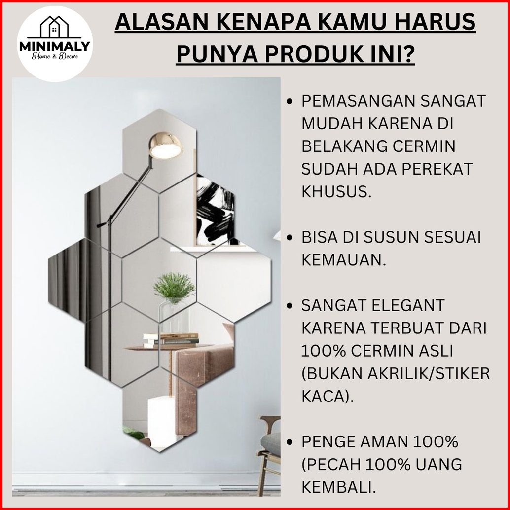 Minimaly12 Cermin Tempel Dinding 1 Paket Isi 13 Pcs Ukuran 16x14cm Kaca Cermin Aesthetic Kaca Dinding Cermin Dinding Cer