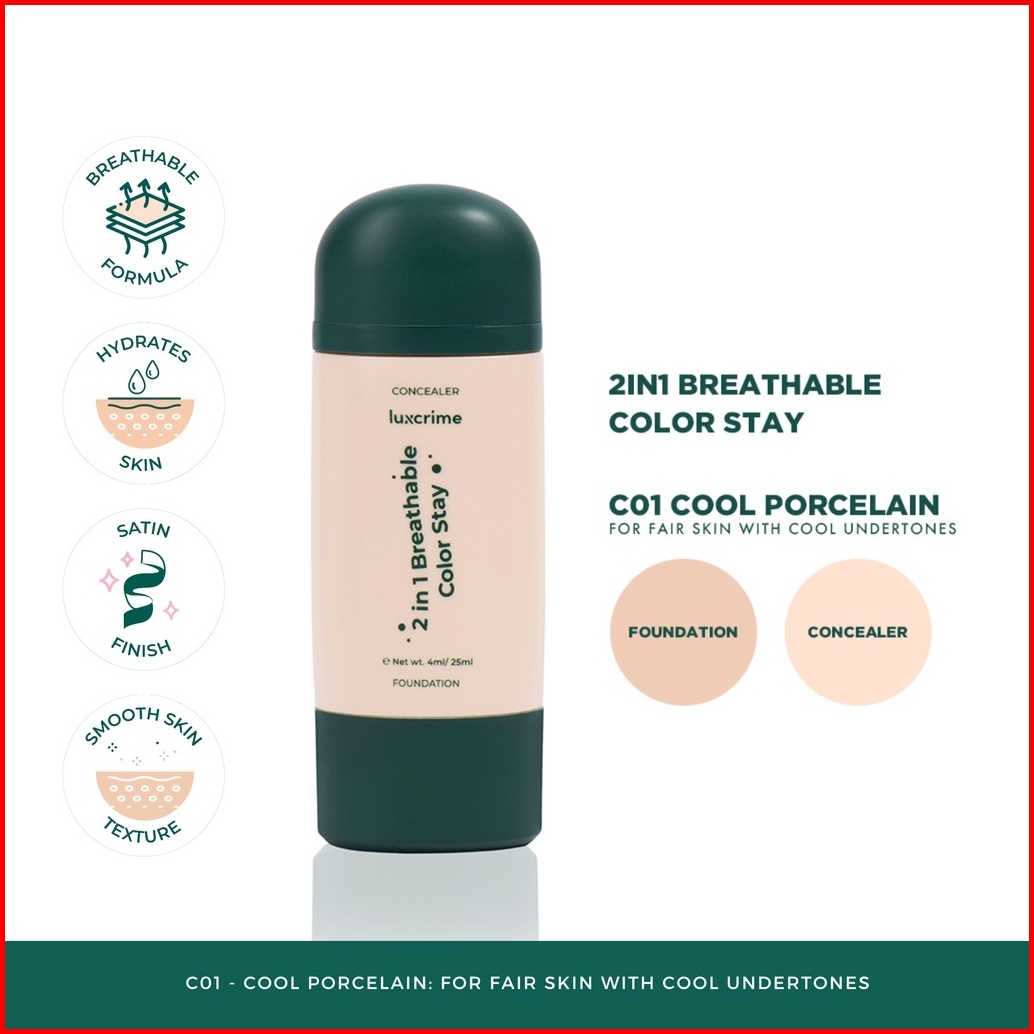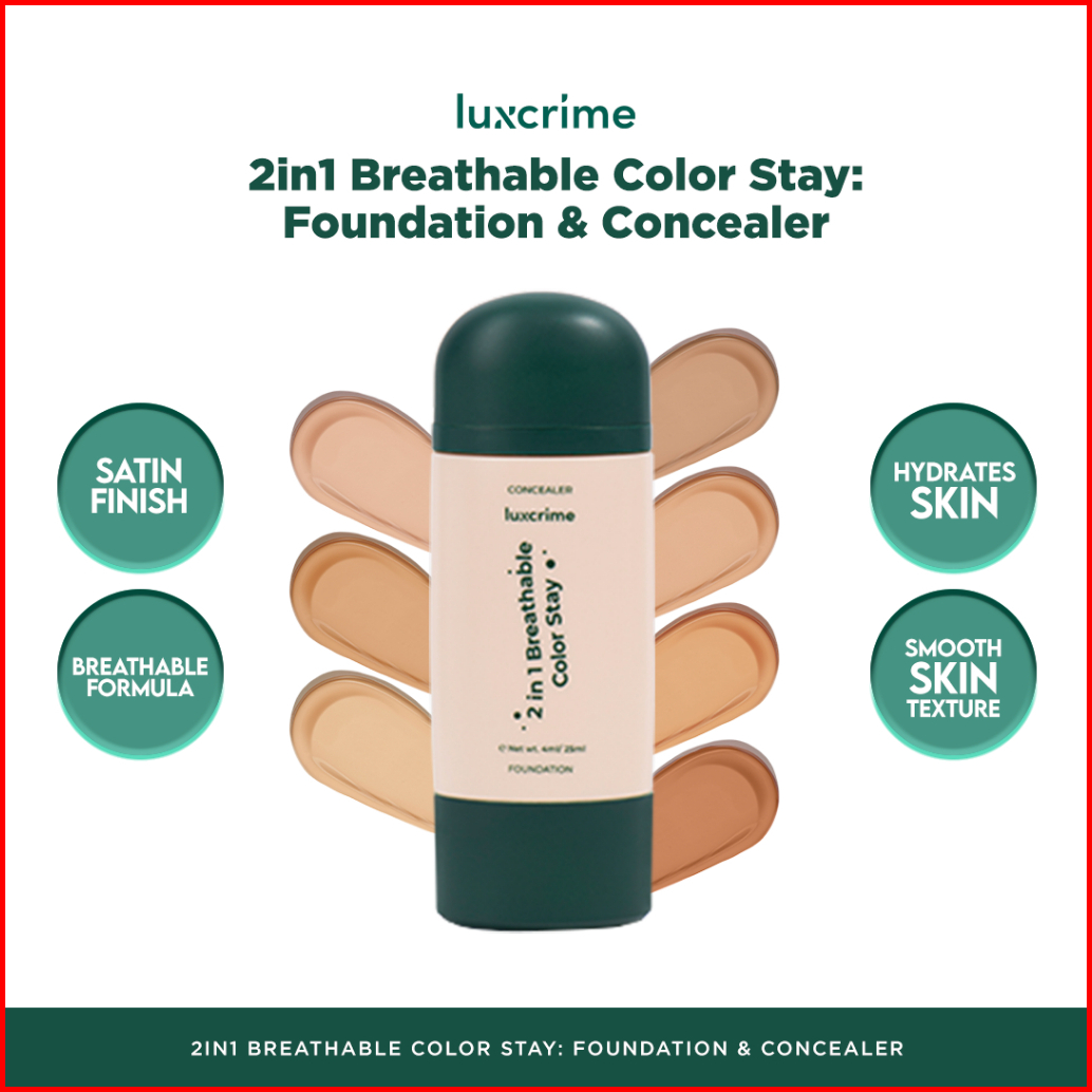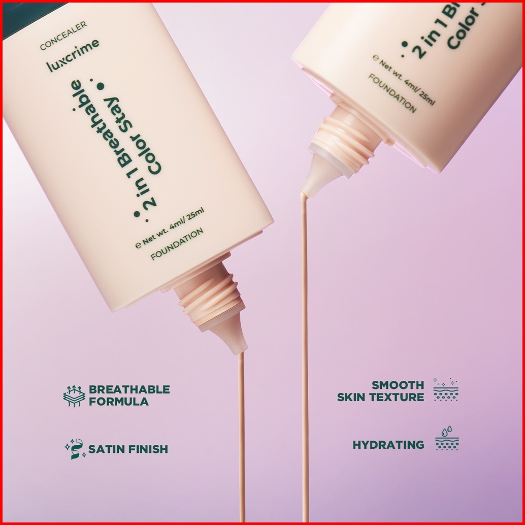Luxcrime 2in1 Breathable Color Stay Foundation Concealer - High Coverage Minim Satin Finish Tahan 16 Jam