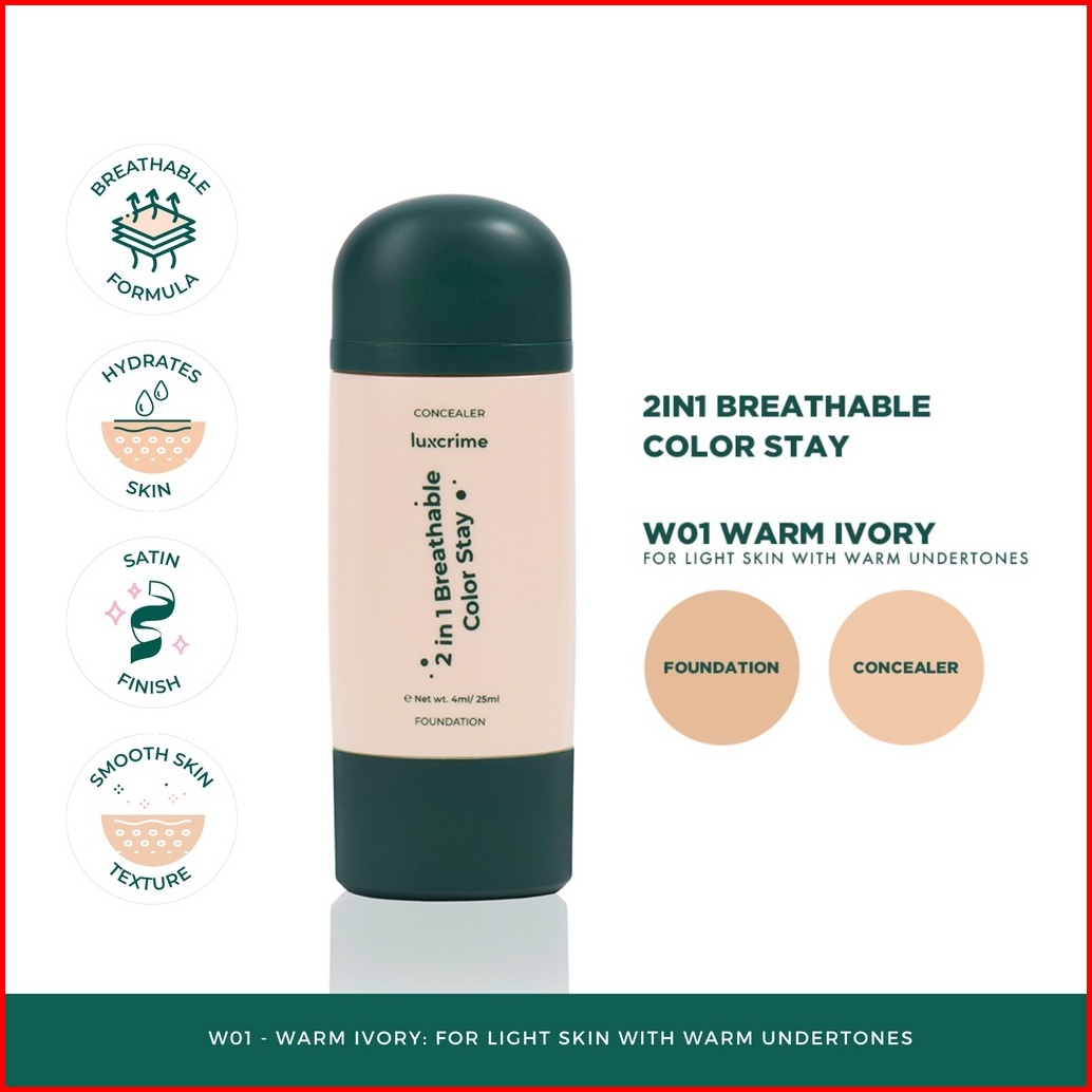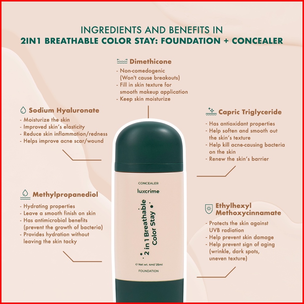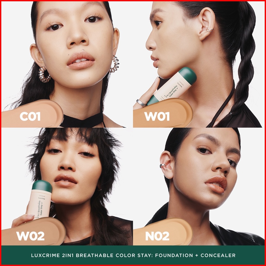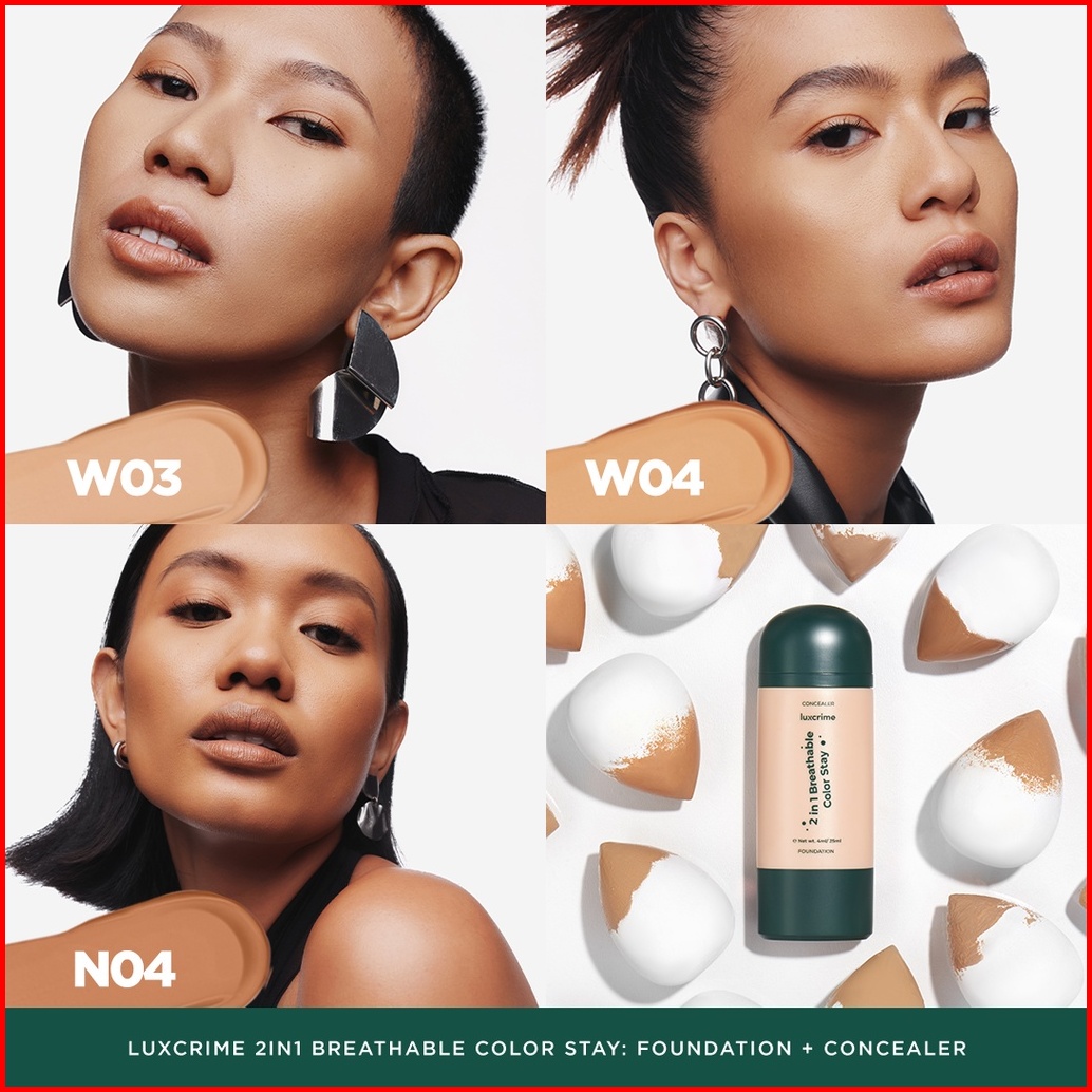Luxcrime 2in1 Breathable Color Stay Foundation Concealer - High Coverage Minim Satin Finish Tahan 16 Jam