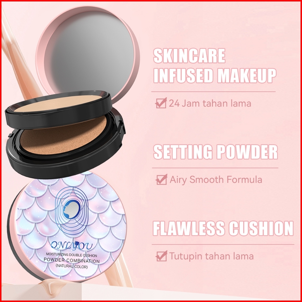 Onlyou Double Air Cushion - Matte Cushion Foundation Dan Setting Powder - Full Coverage 24h Long-lasting Glowing Waterpr