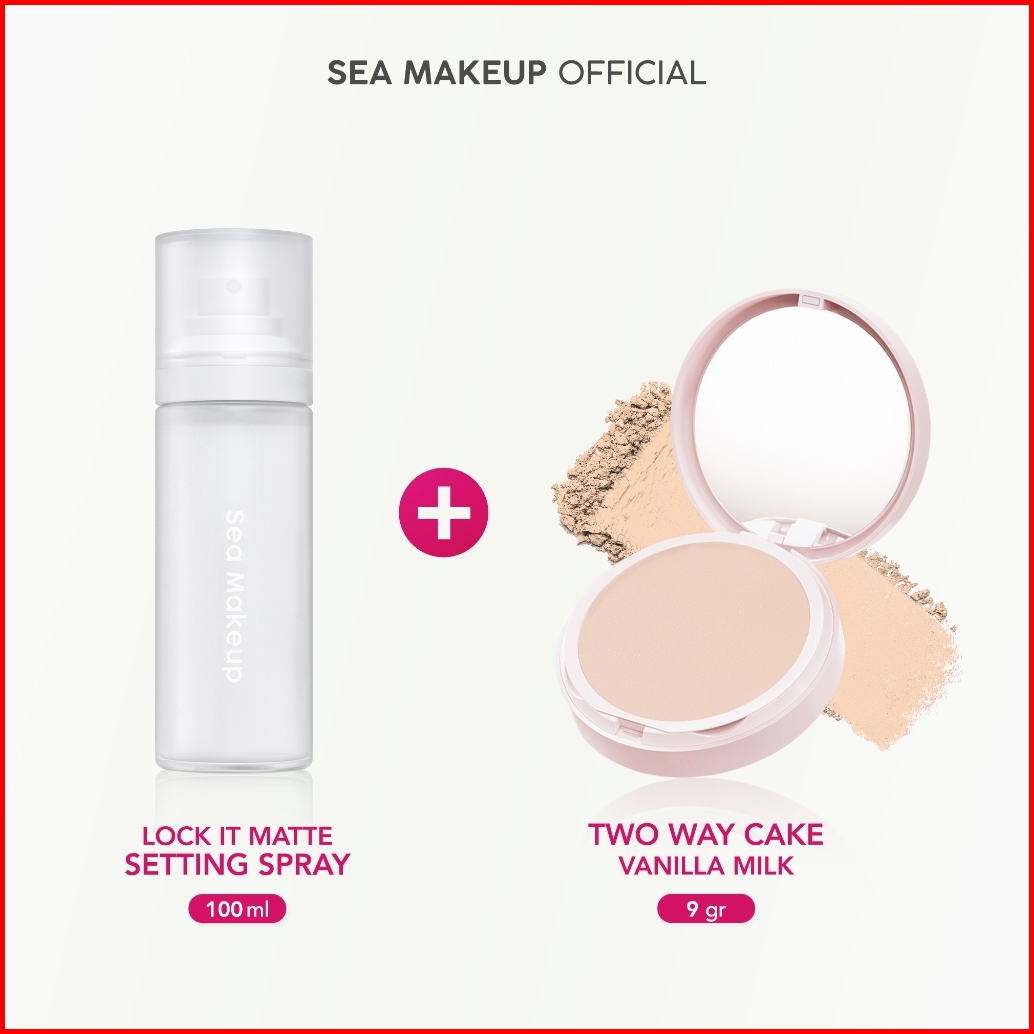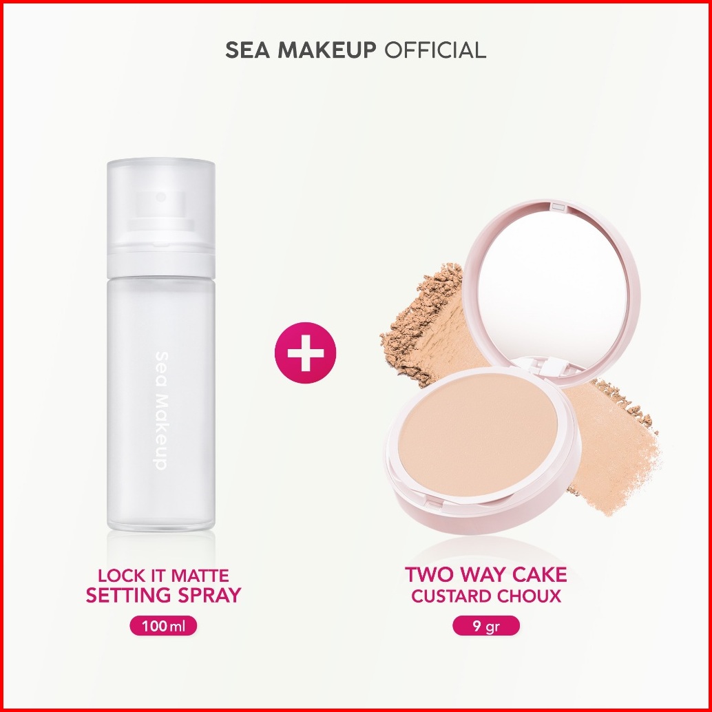 Bundle 2in1 Sea Makeup Two Way Cake Setting Spray Bedak Two Way Cake Powder Foundation Untuk Wajah Berjerawat