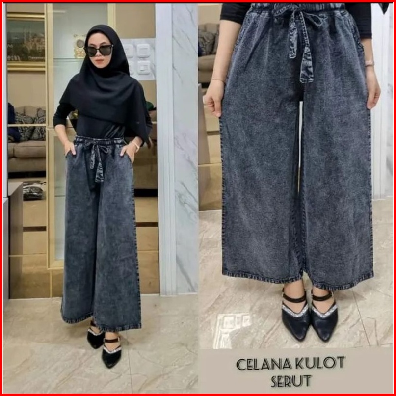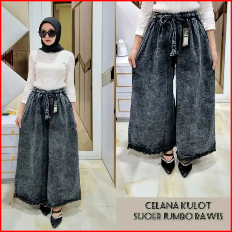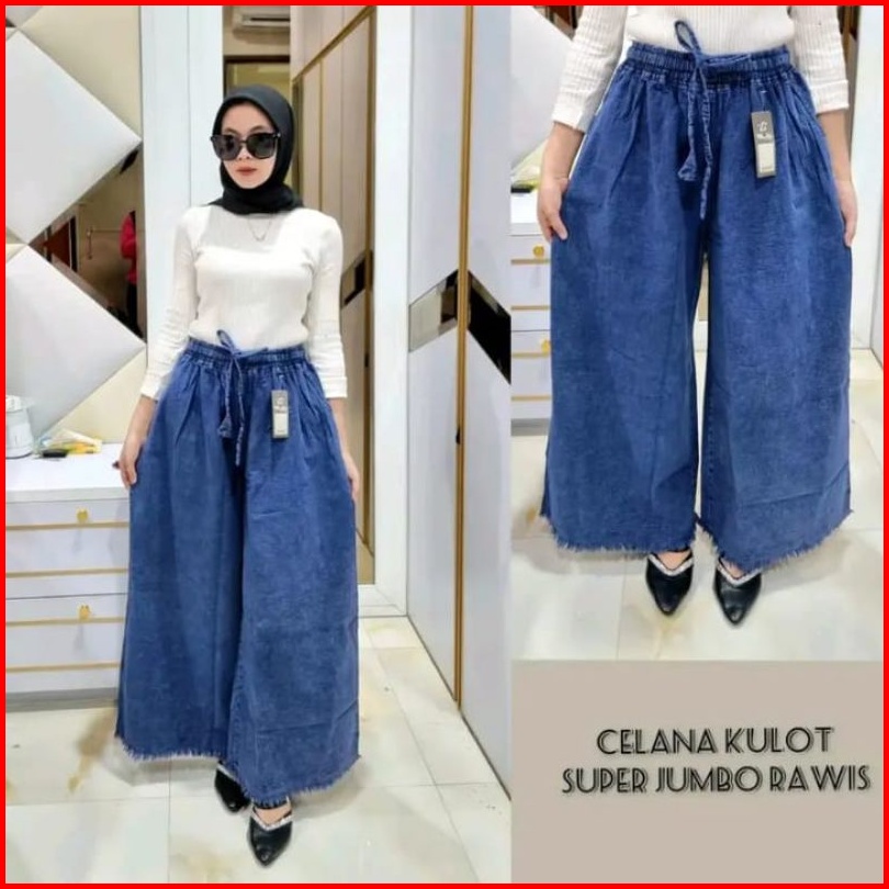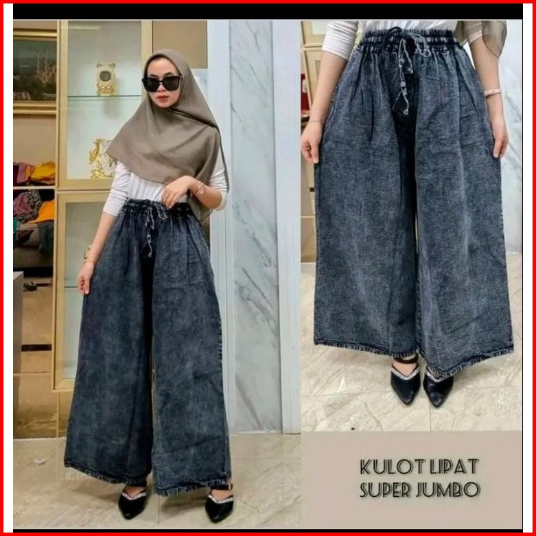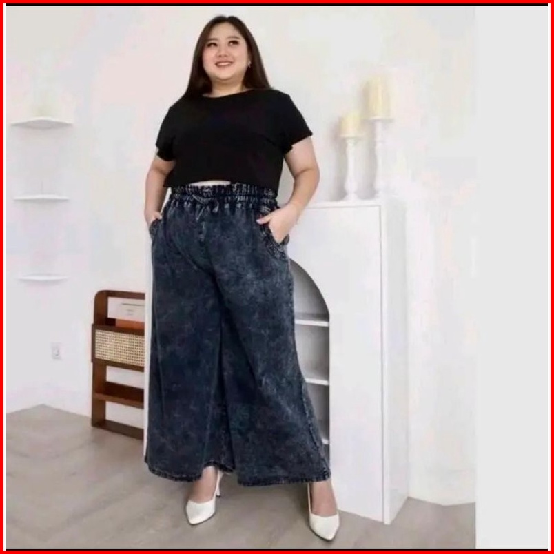 Kulot Jeans Snow Pinggang Full Karet Kulot Jumbo Rawis Lipat Muat Berat Badan 45-100 Kg