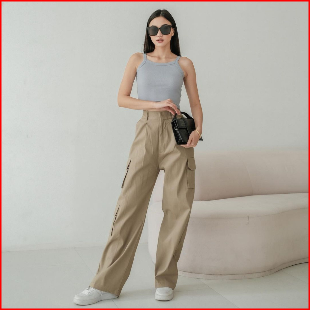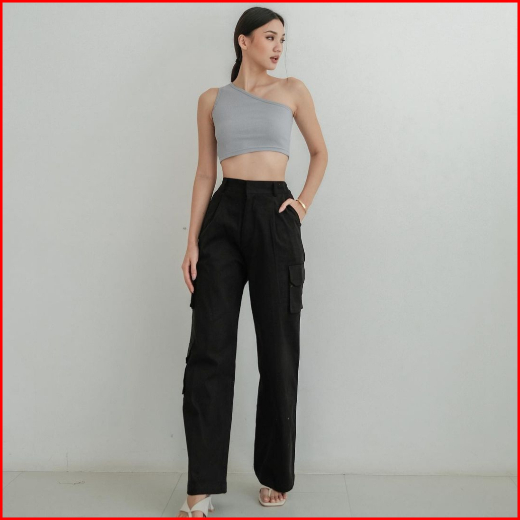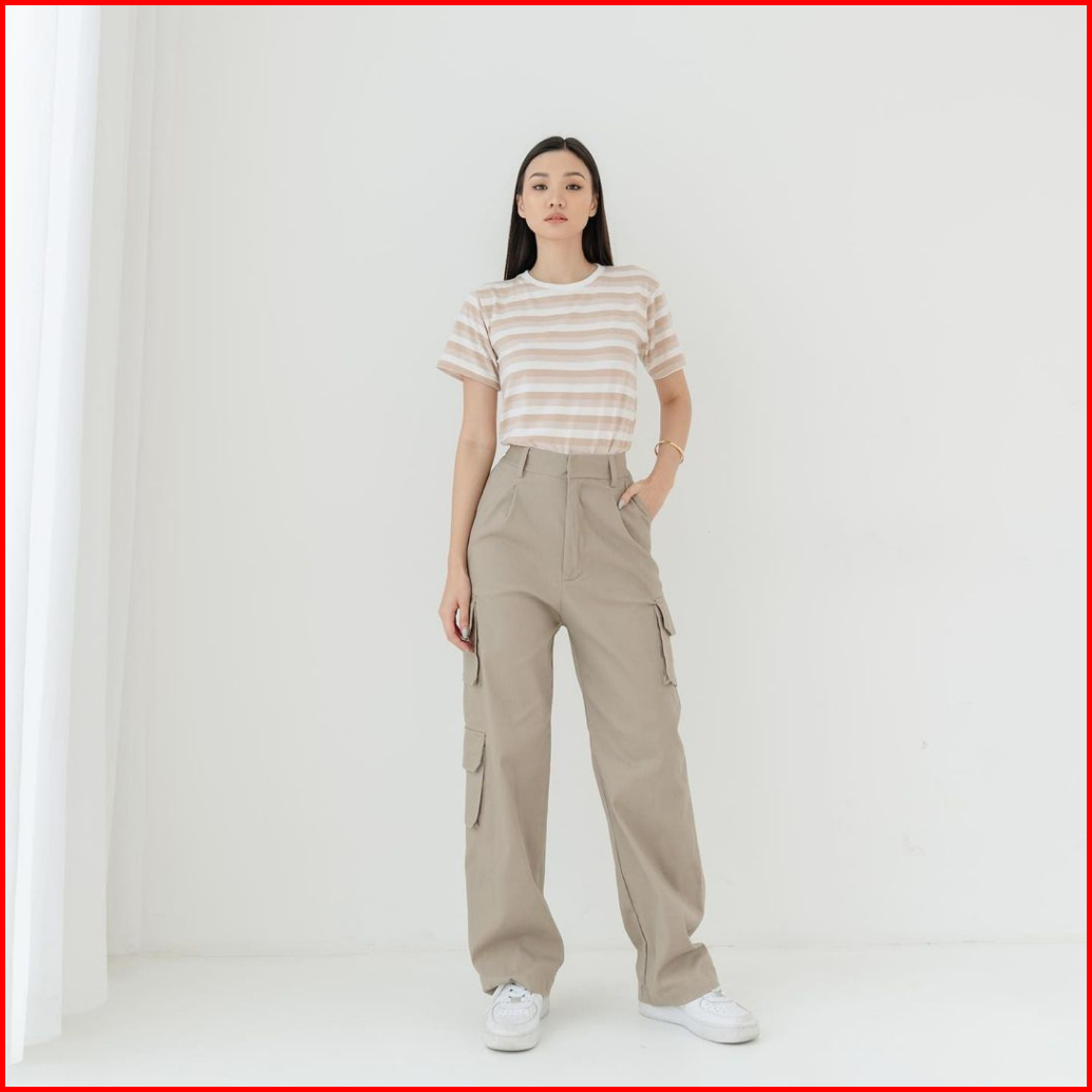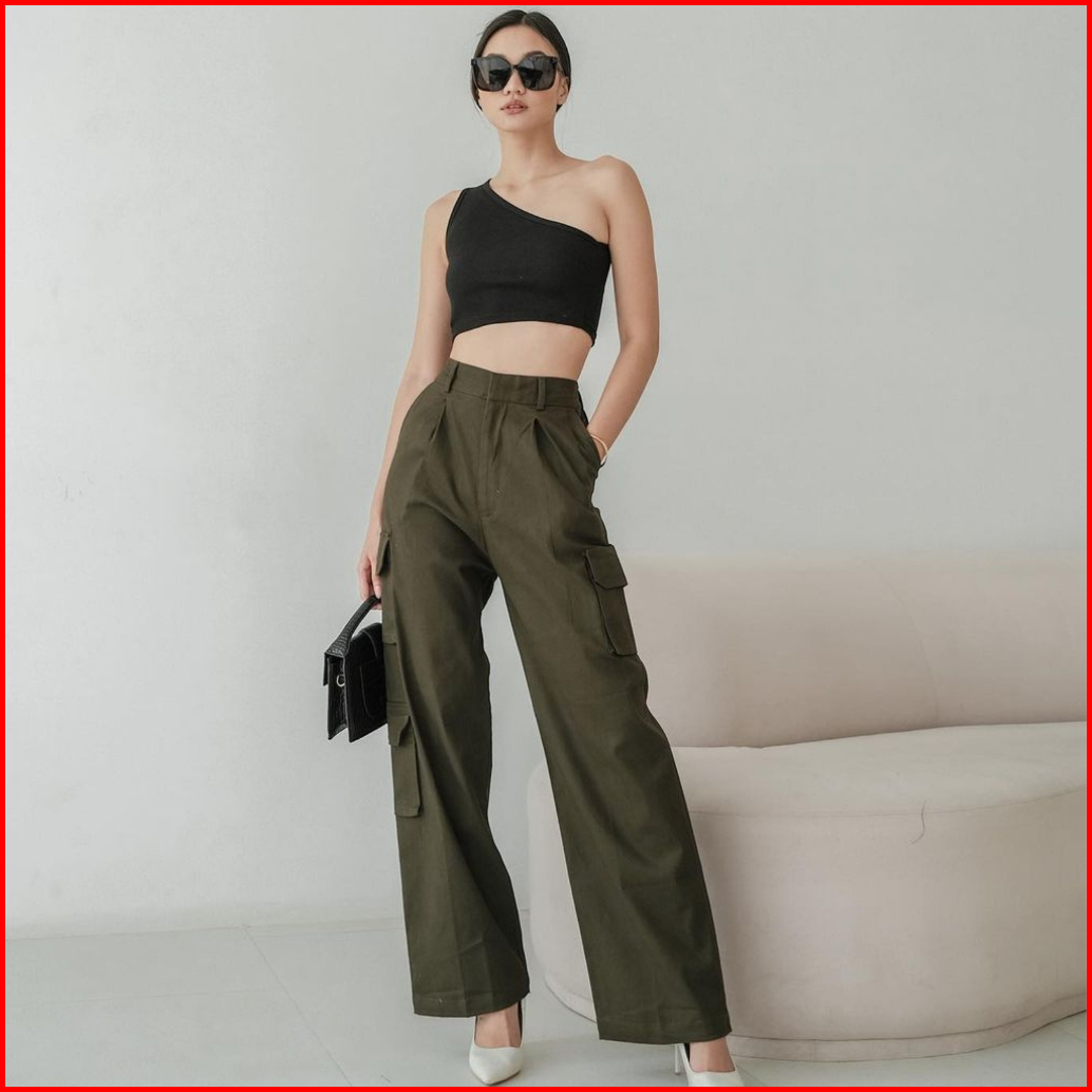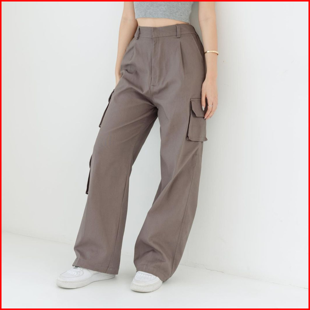 Cargo Pant High Waist Culottes Celana Kargo Panjang Kulot Pingggang Tinggi