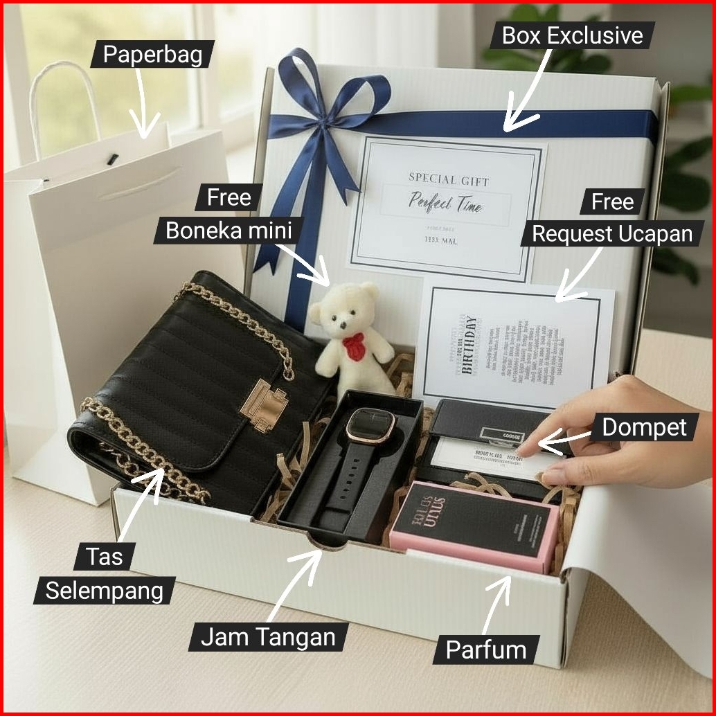 Hampers Gift Box Cewek Wanita Exclusive Untuk Kado Hadiah Isi Jam Tangan Tas Dompet Dll