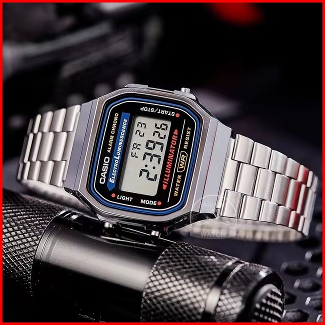Casio General Vintage A168wa-1w Jam Tangan Unisex Digital Retro Stainless Steel Silver