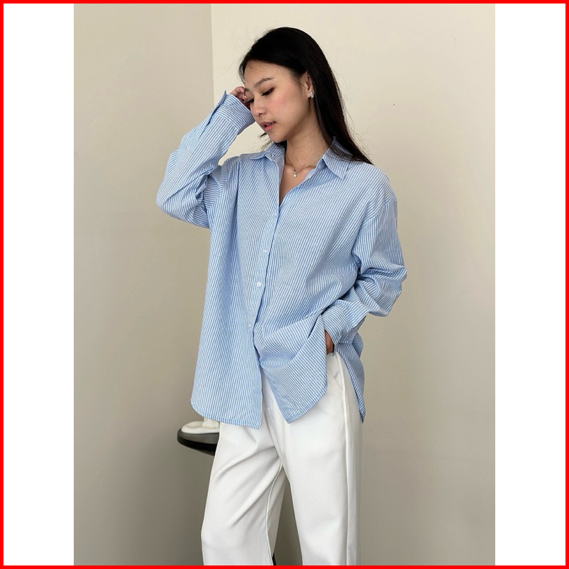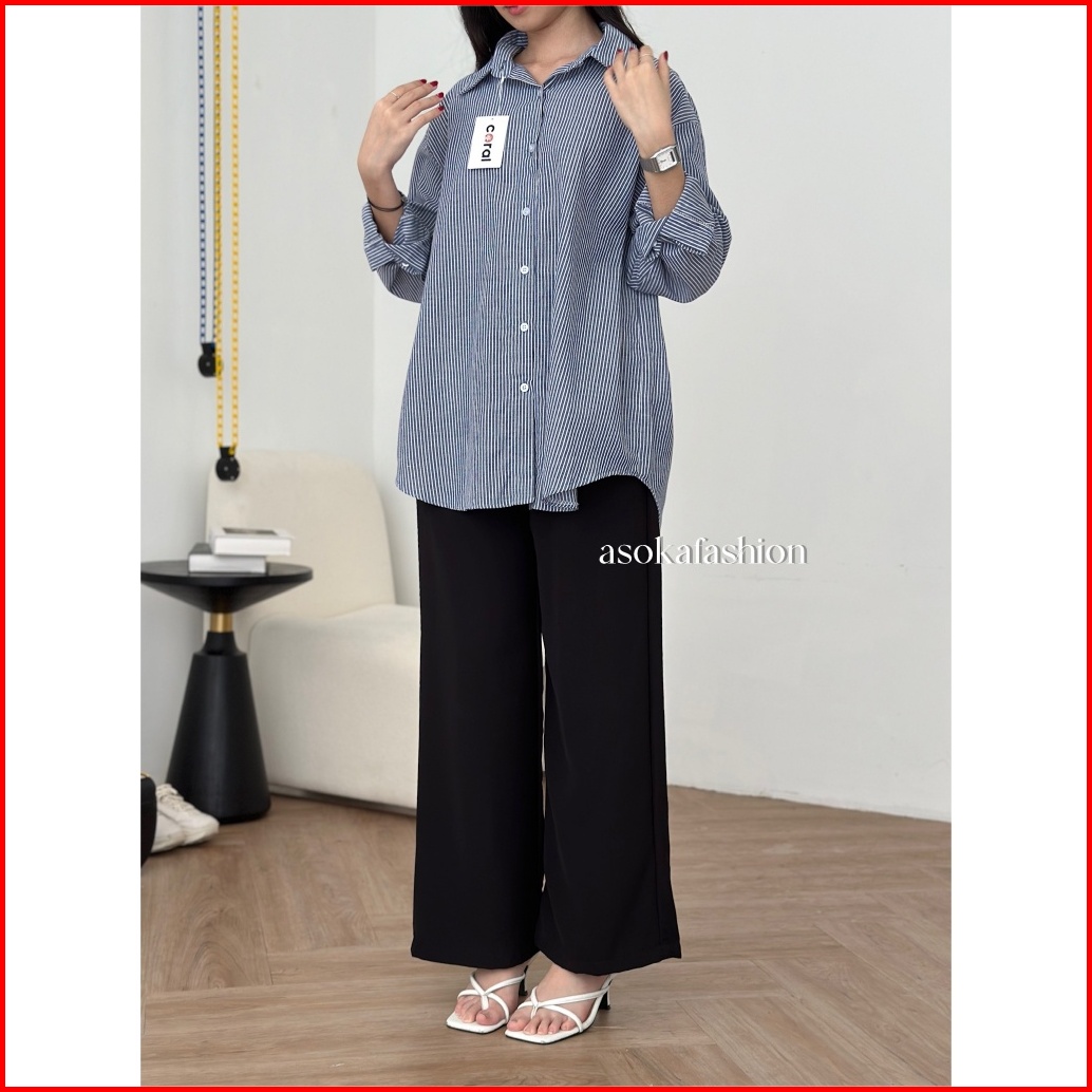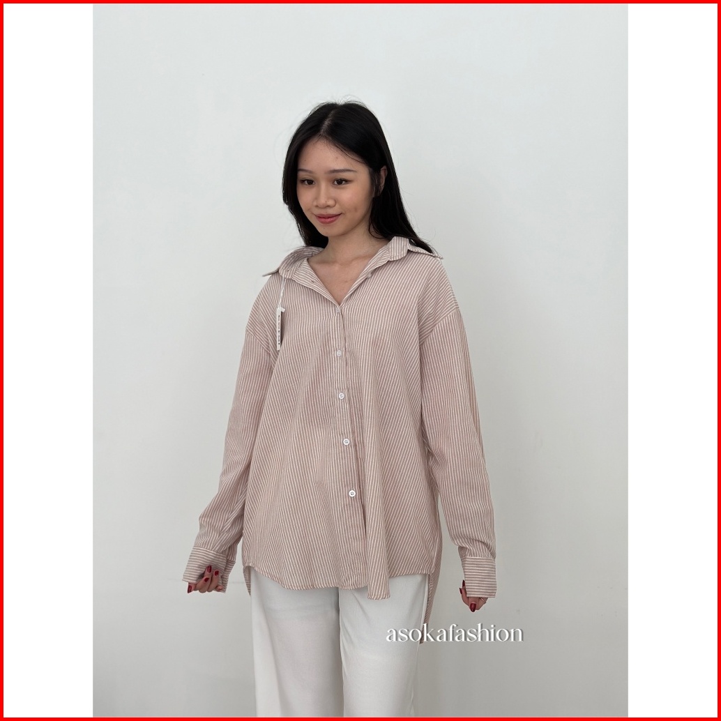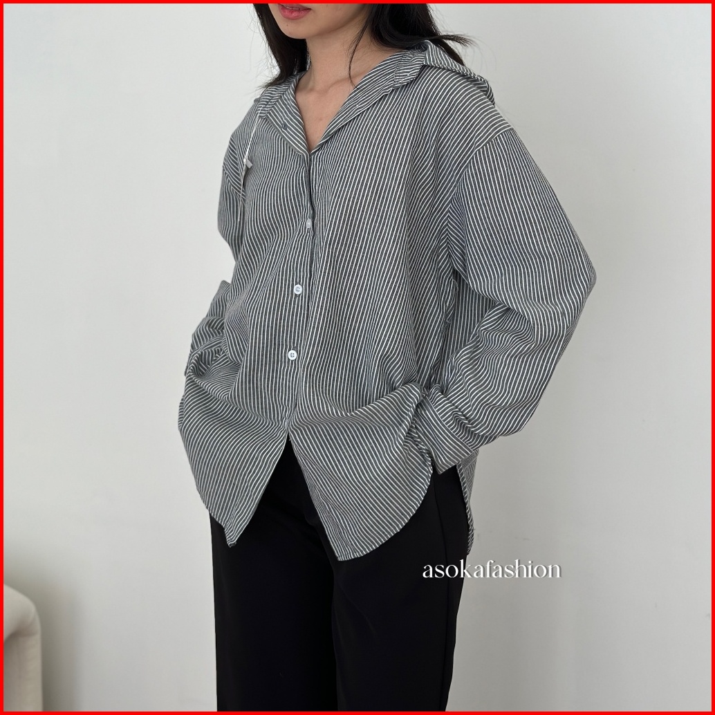 Asoka Gamie Shirt 2099 - Kemeja Wanita Stripe Shirt Oversize - Atasan Katun Salur