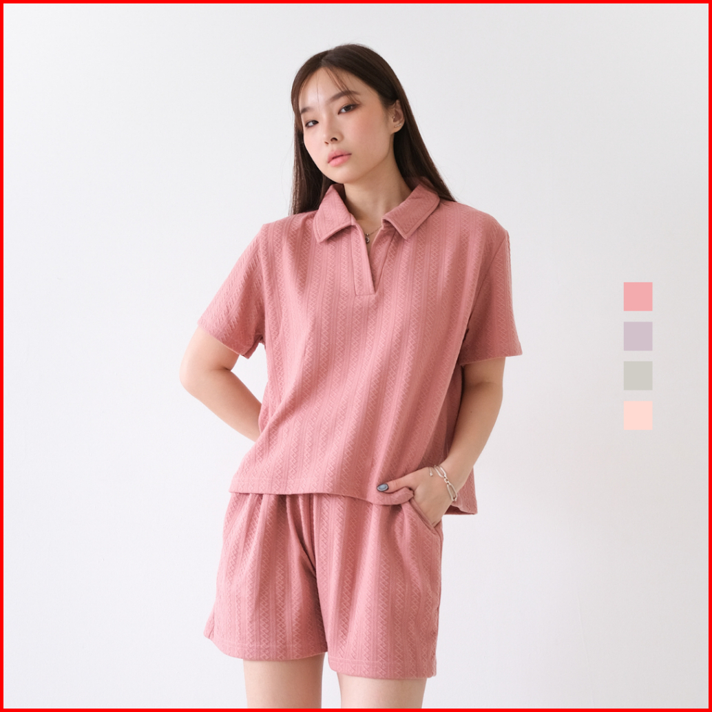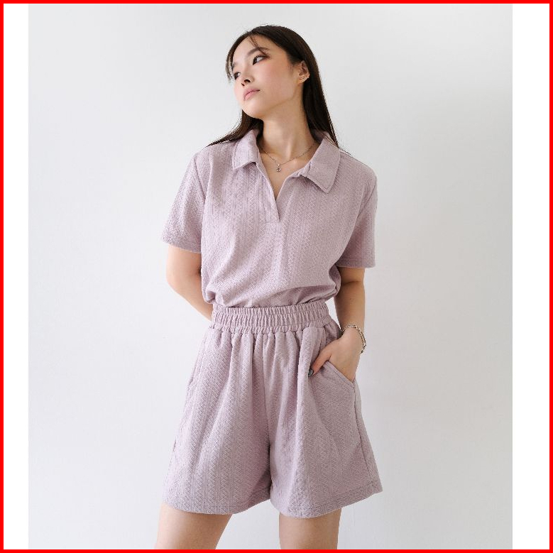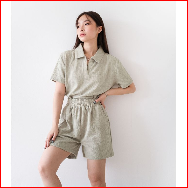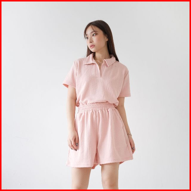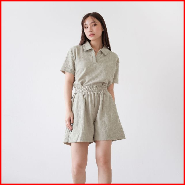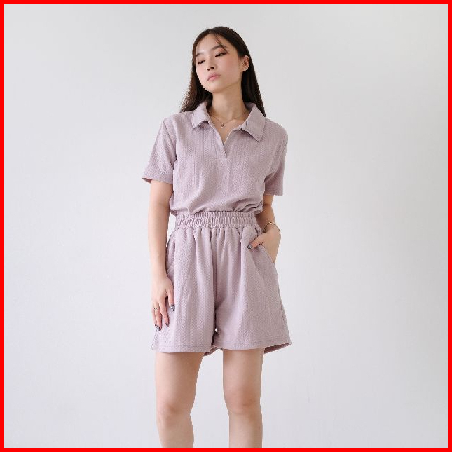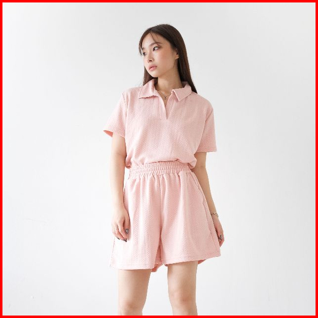 Sagi - Iora Polo Set Setelan Atasan Kaos Polo Knit Lengan Pendek Dan Celana Pendek