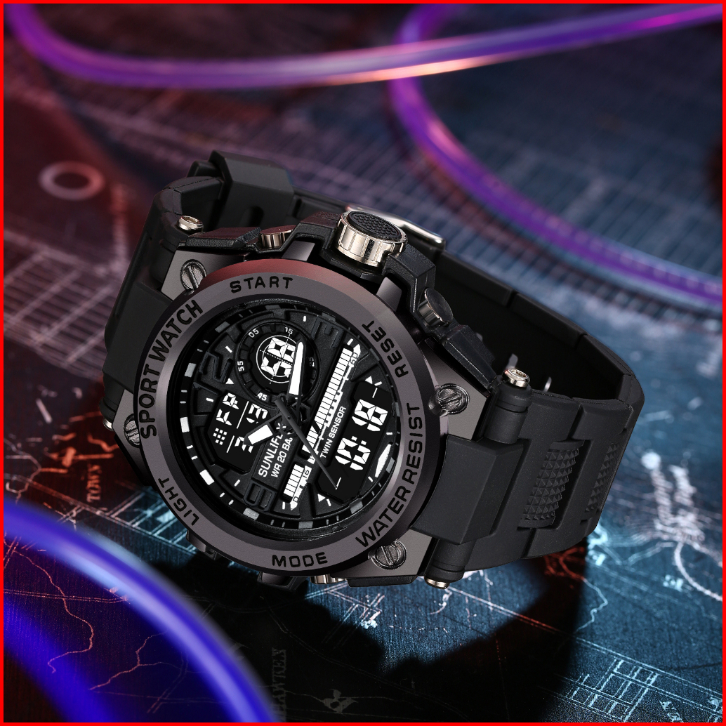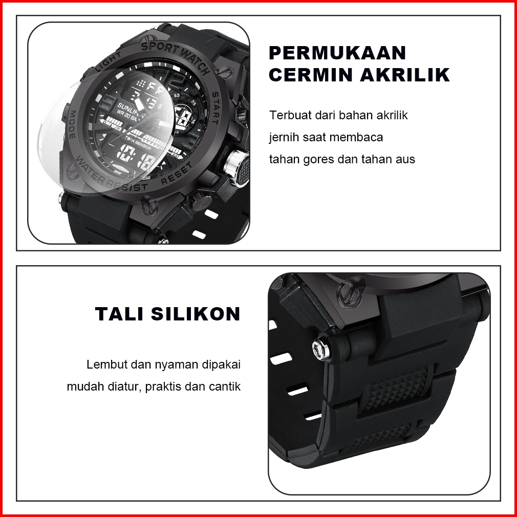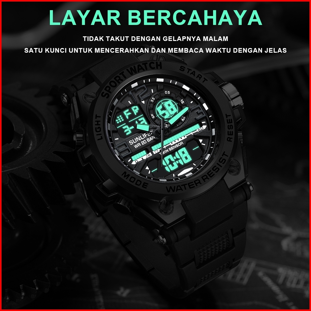Sunlifex Jam Tangan Pria Digital Analog Olahraga Multifungsi Tali Silikon Jam Tangan Cowok D003