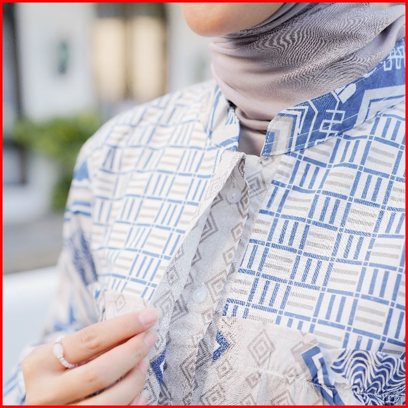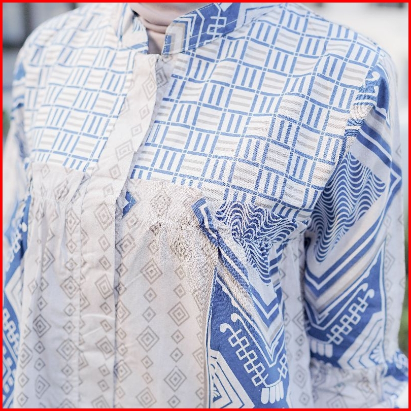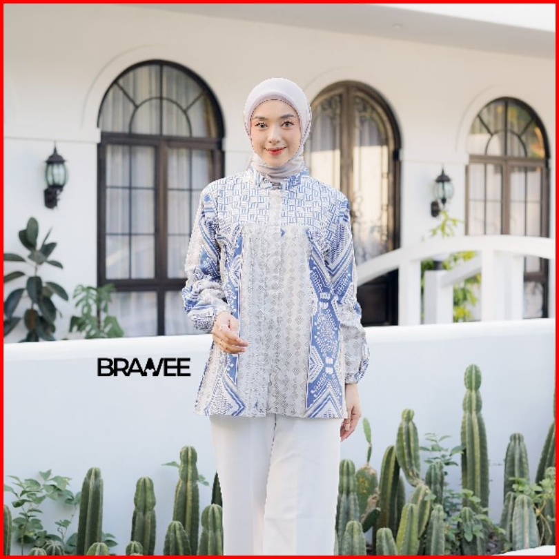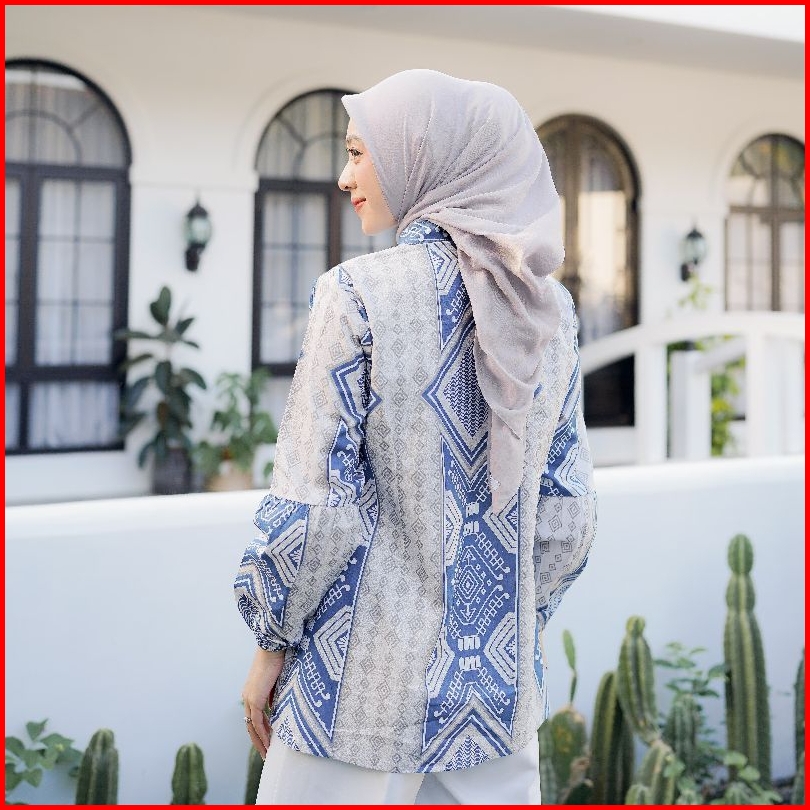 Brawee Blouse Batik Wanita Atasan Tradisional Toraja Biru Balon