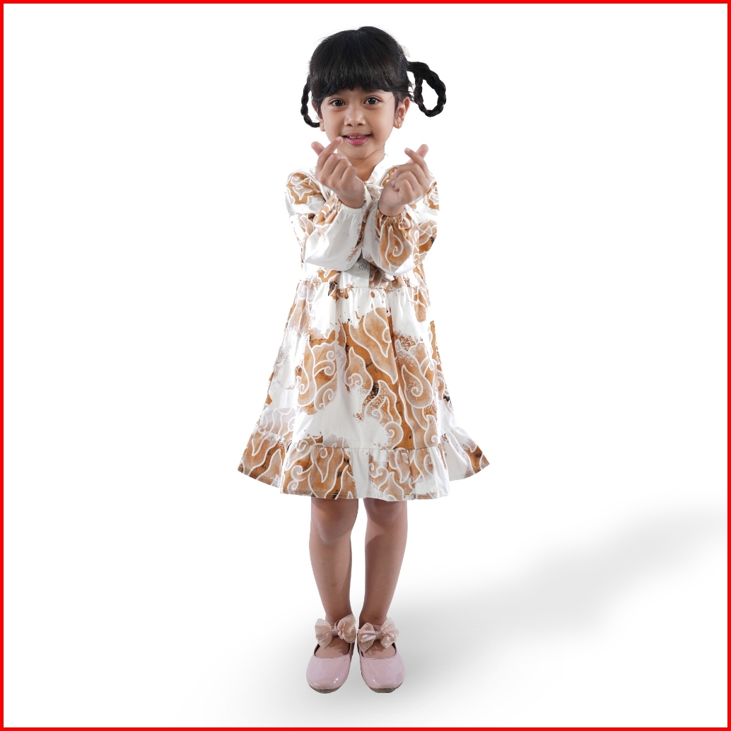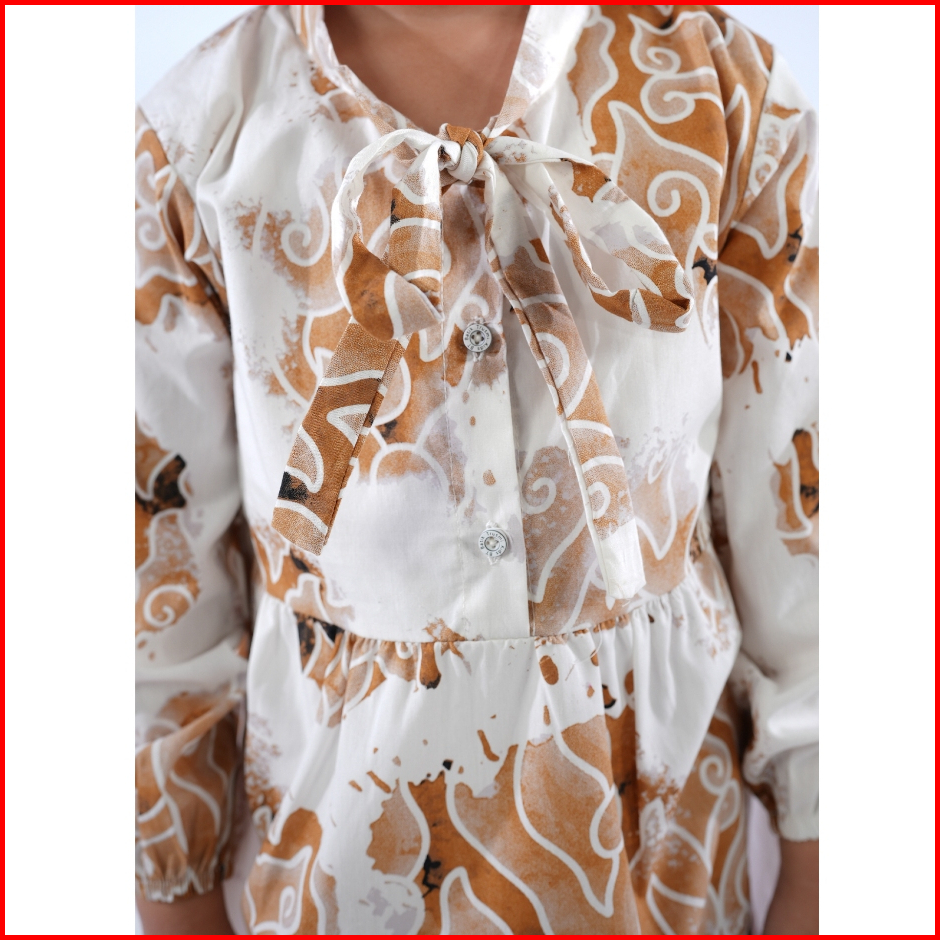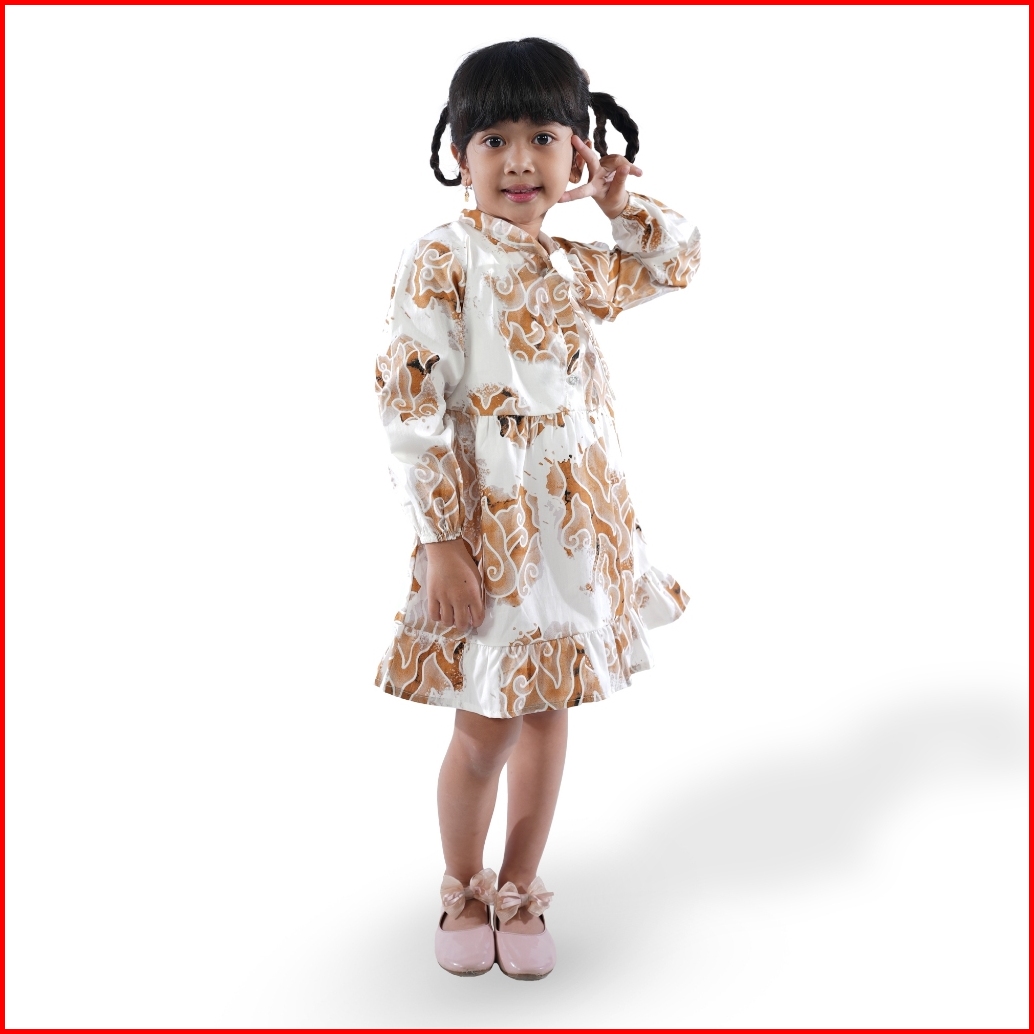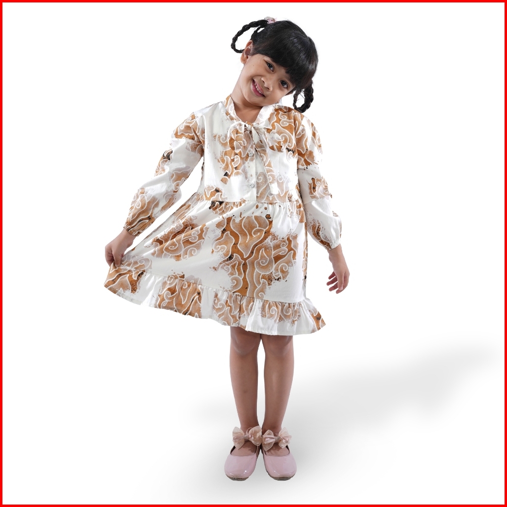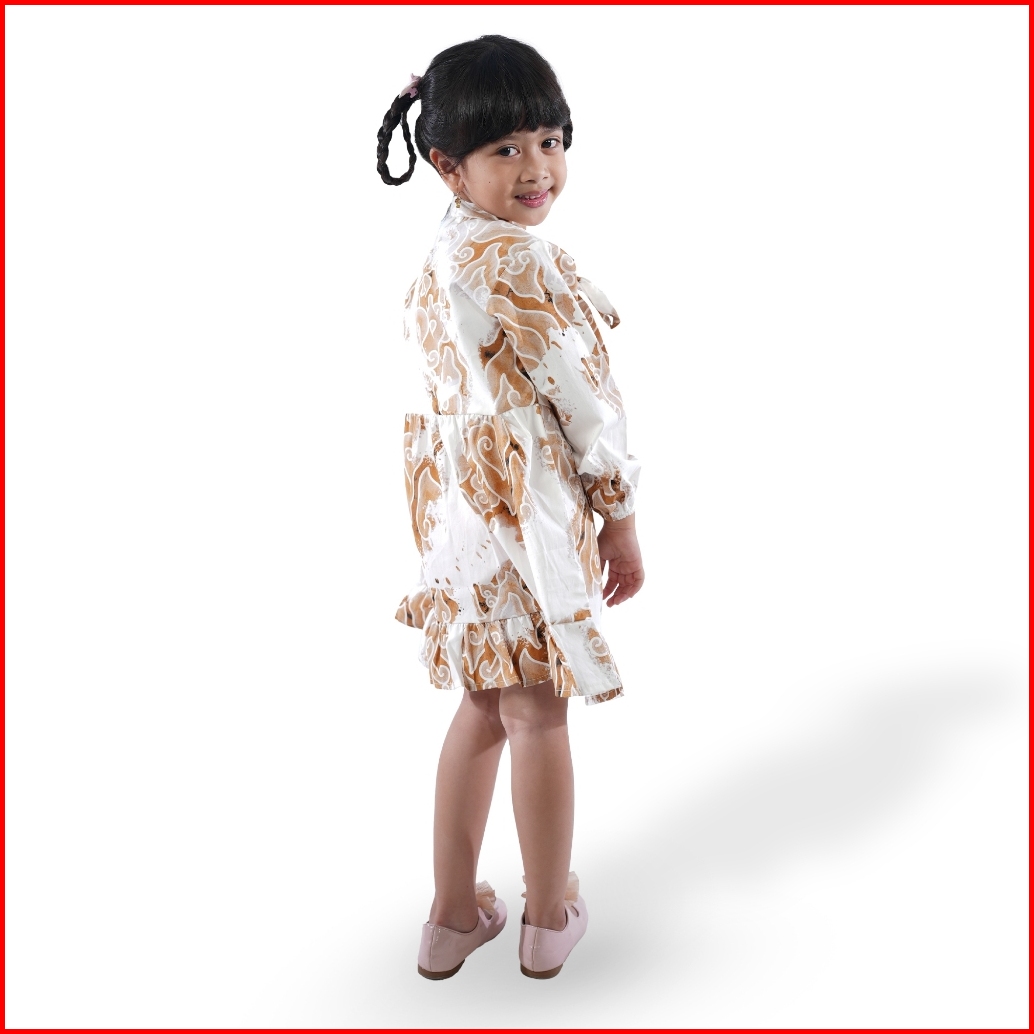 Batik Trusmi Dress Batik Anak Perempuan Motif Mega Mendung Bumi Coklat