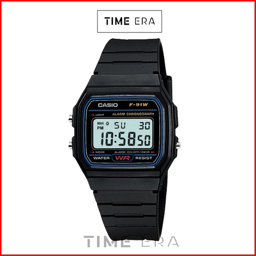 Casio General F-91w-1dg F91w-1dg Jam Tangan Pria - Digital - Karet - Hitam Biru