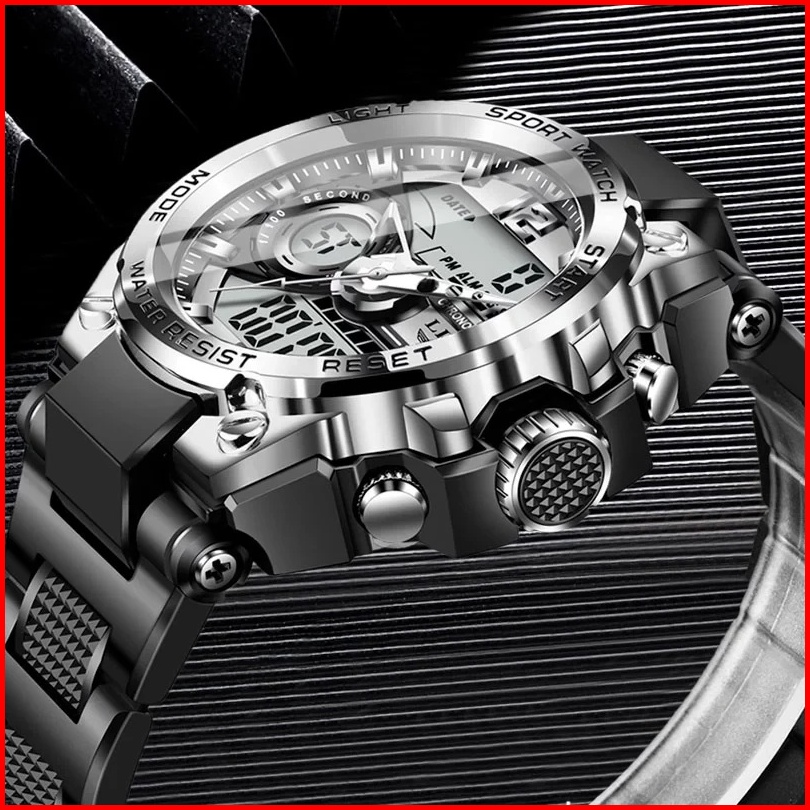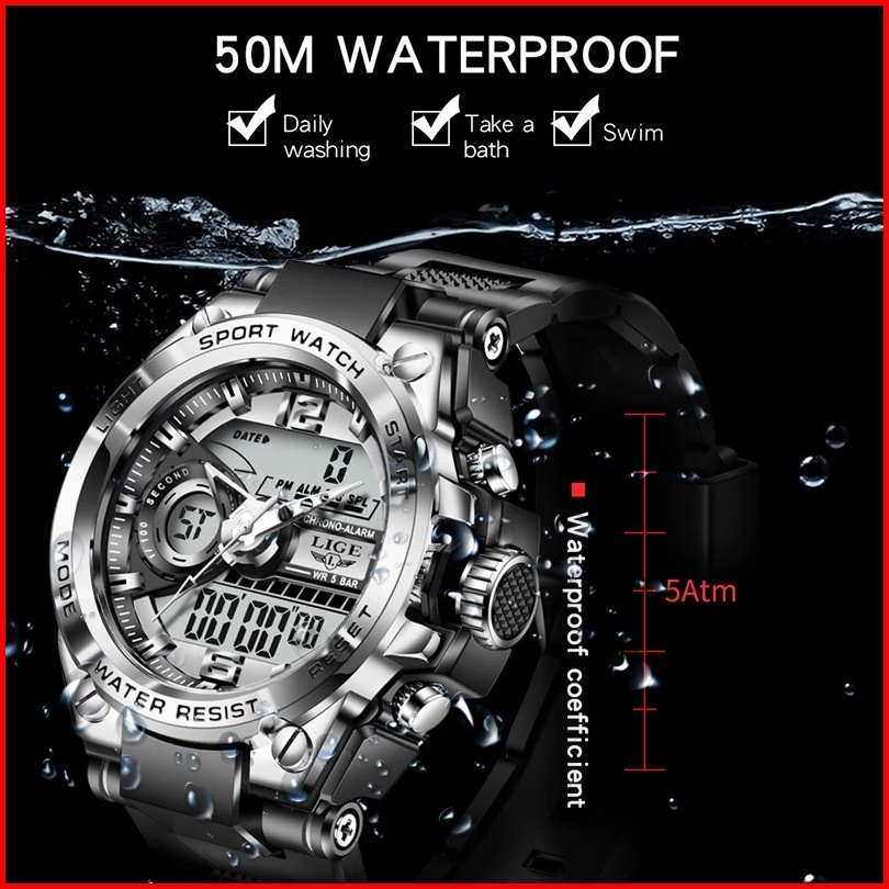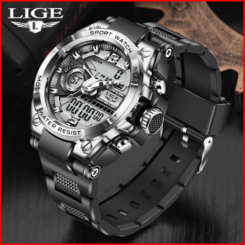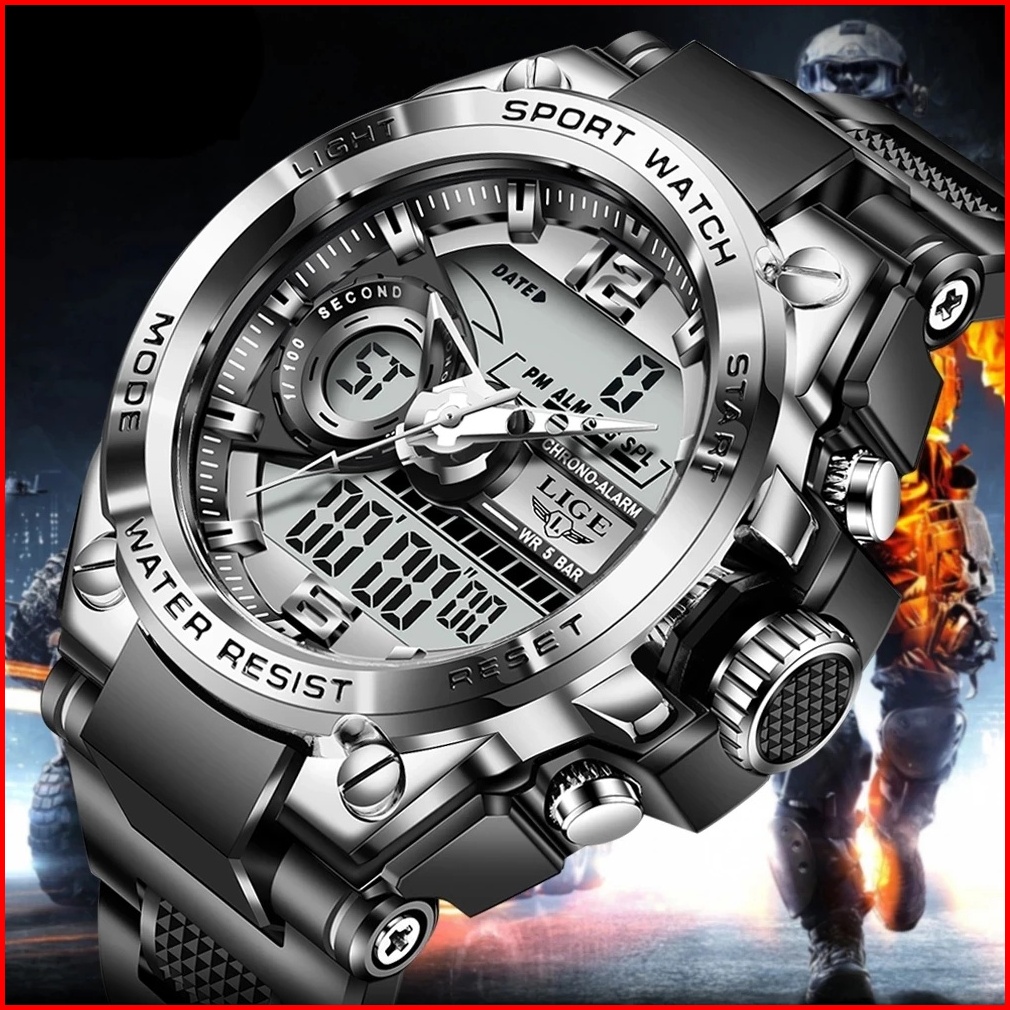 Lige Jam Tangan Digital Pria Multifungsi Arloji Bercahaya Waktu Ganda Kalender Jam Tangan Elektronik Kotak