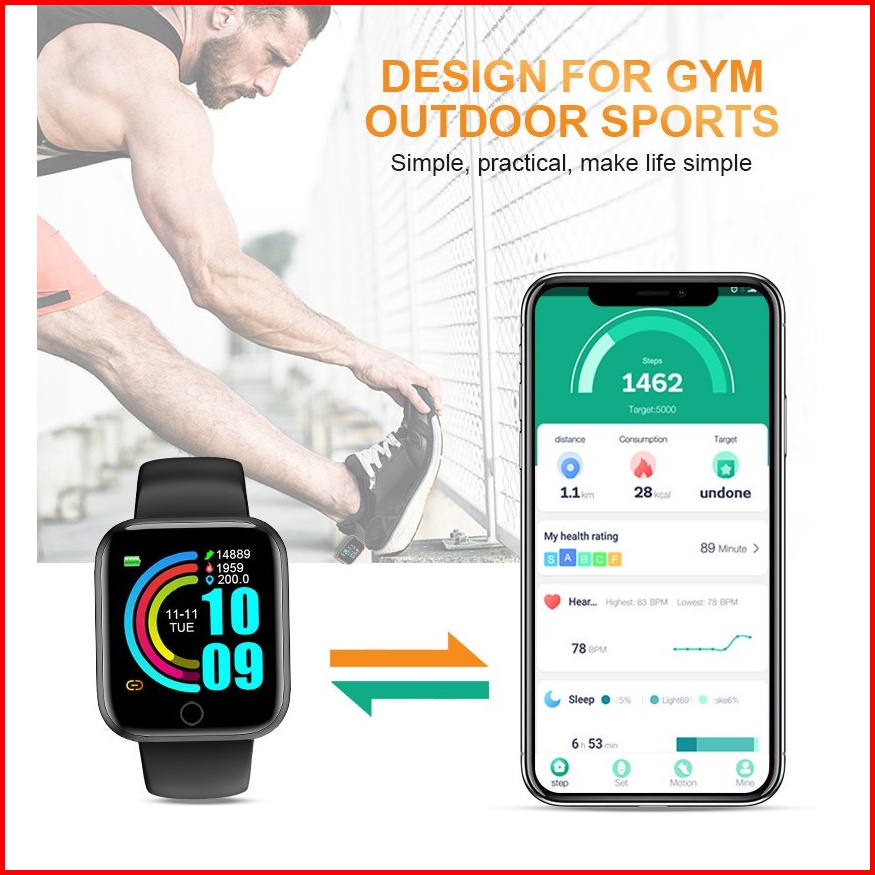 Tesladi Smartwatch Y68 Sport Tahan Air Smart Bluetooth Watch Heart Rate Gelang Pedometer Pelacak Kebugaran