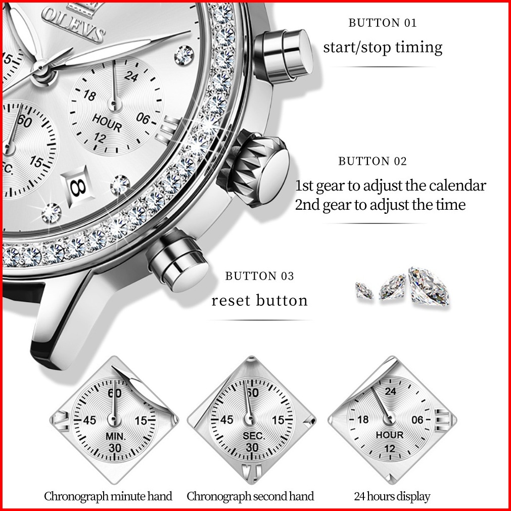 Olevs Jam Tangan Wanita Anti Air Anak Perempuan Kecil Original Kulit Korea Casual Putih Chrono Aktif Watch Women