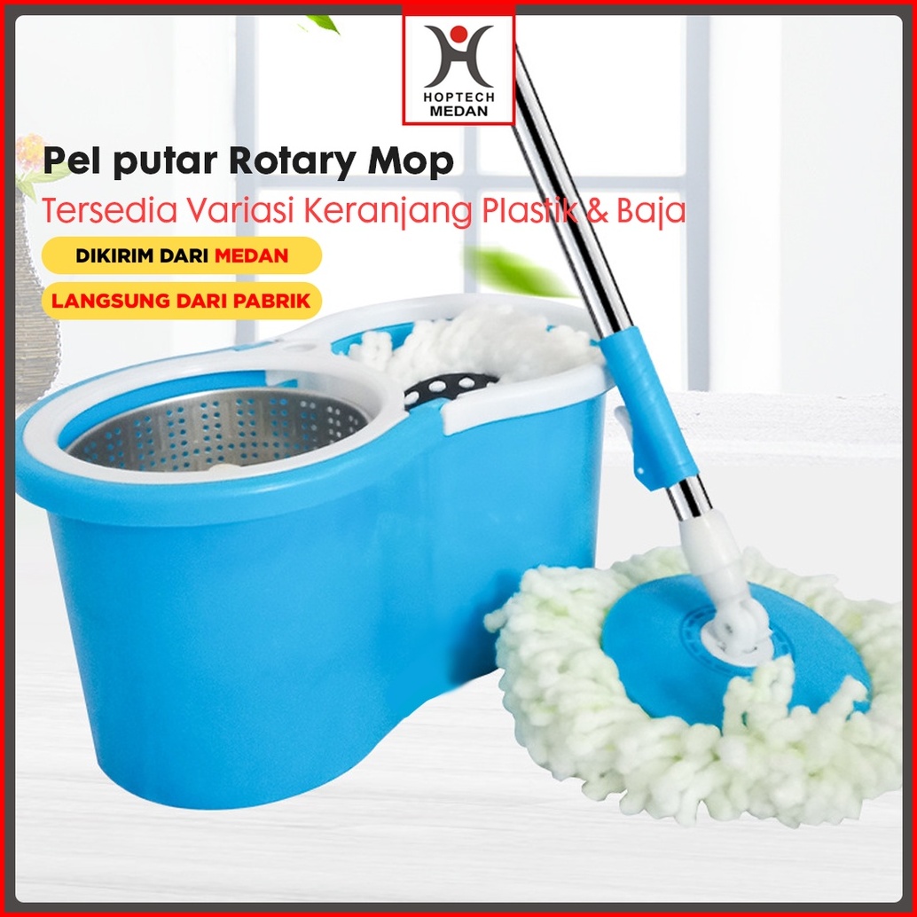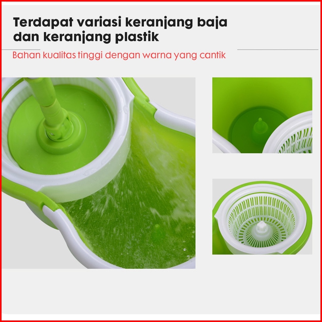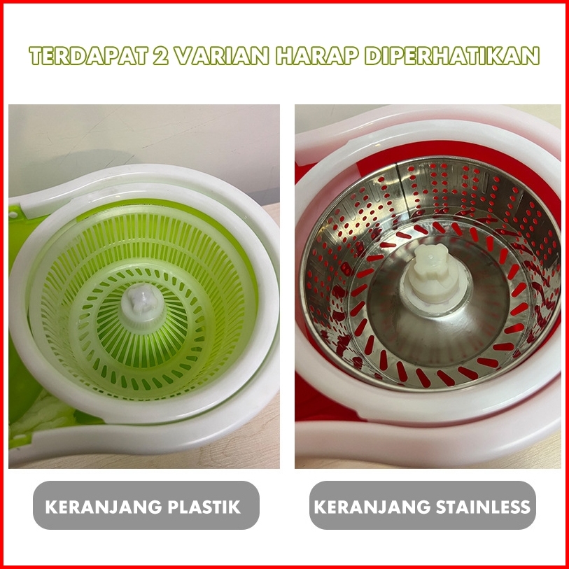 Set Alat Pel Lantai Stainless Super Mop Dengan Ember Pencuci Putar Hand Preassure Rotary Mop 360