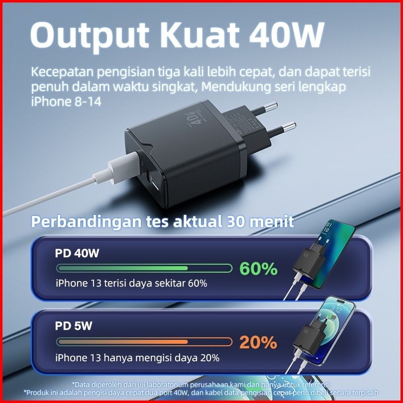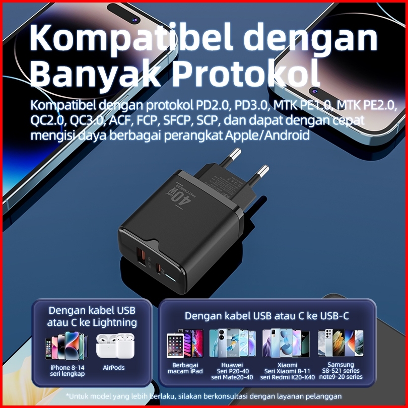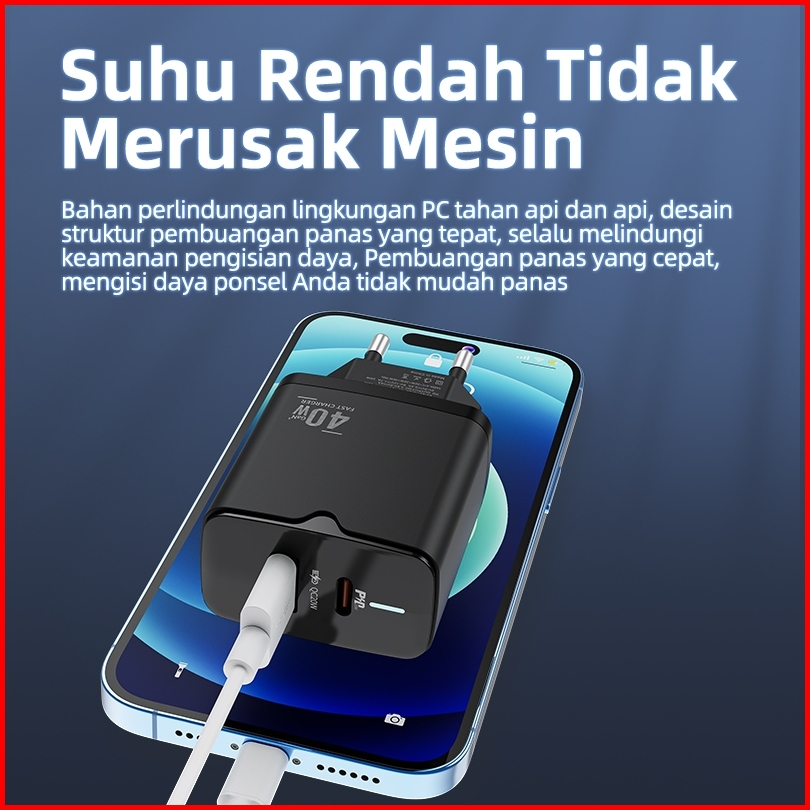 Kivee Kepala Charger Iphone Fast Charging Pd20w Type-c Usb 40w Garansi Asli 1 Tahun
