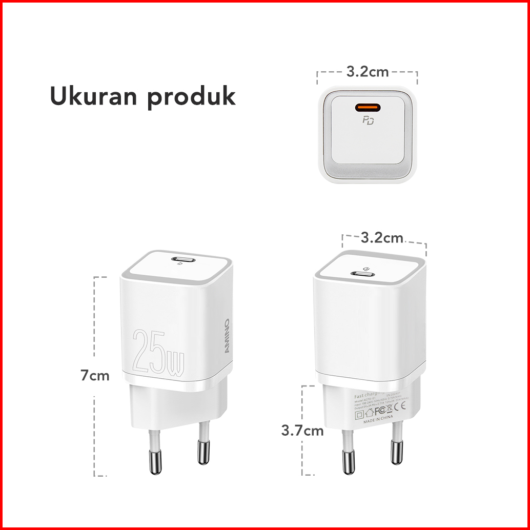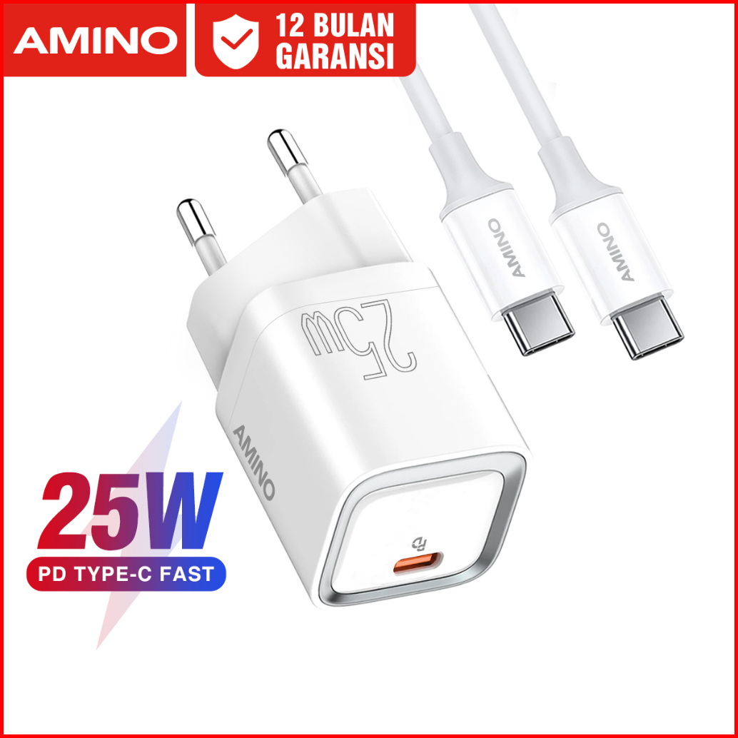 Amino Fullset Pd Type C Kabel Untuk Iphone Lighning Pd 25w Type C Mini Kepala Charger Super Smart Usb C Qc Fast Charging