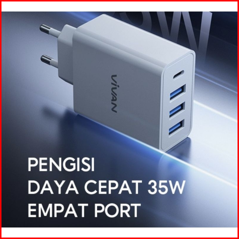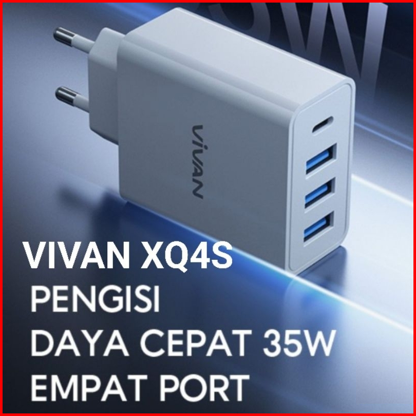 Vivan Adaptor Charger Xq4s Batok Charger 4 Output 35w Fast Charging 3usb-a 1usb-c Garansi Original Resmi