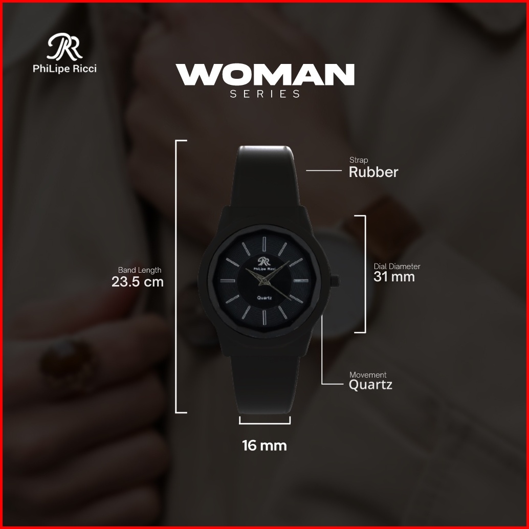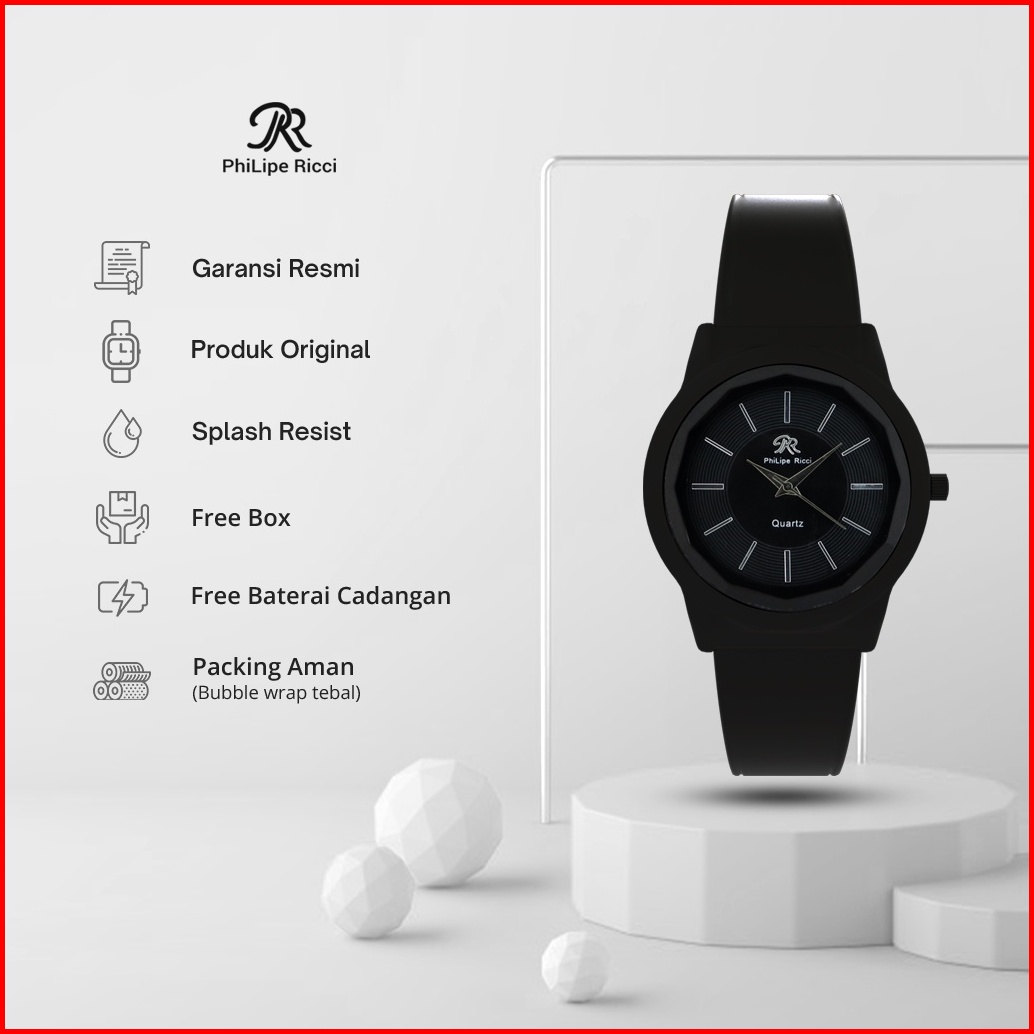 Philipe Ricci Jam Tangan Wanita Analog Karet Quartz Hitam W6557 Free Box