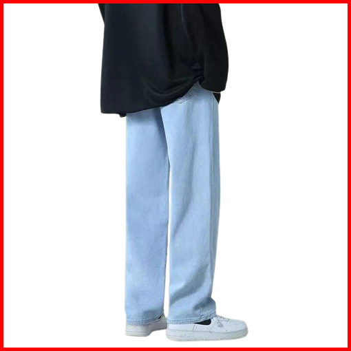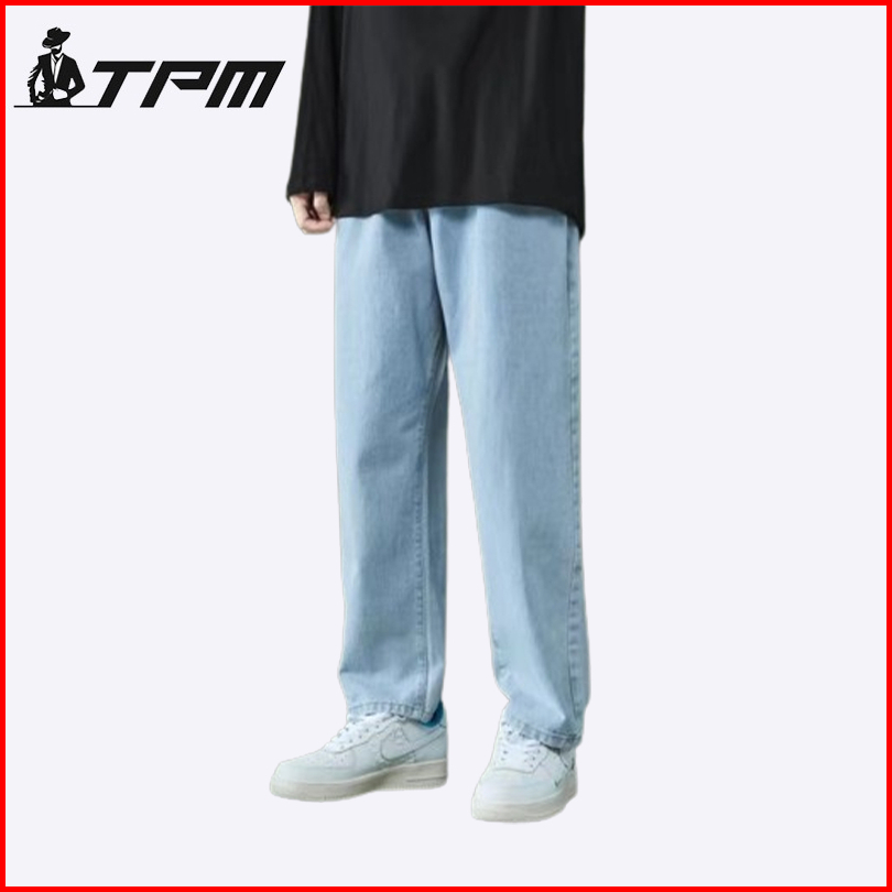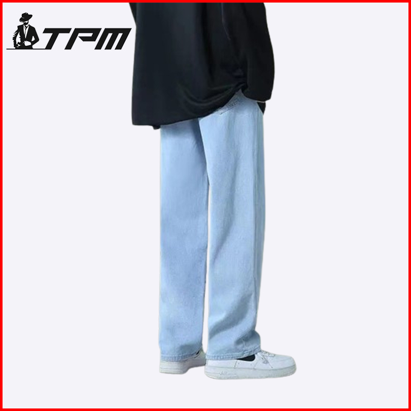 Tpm Korean Style Wide Leg Celana Jeans Loose Pria Biru Muda
