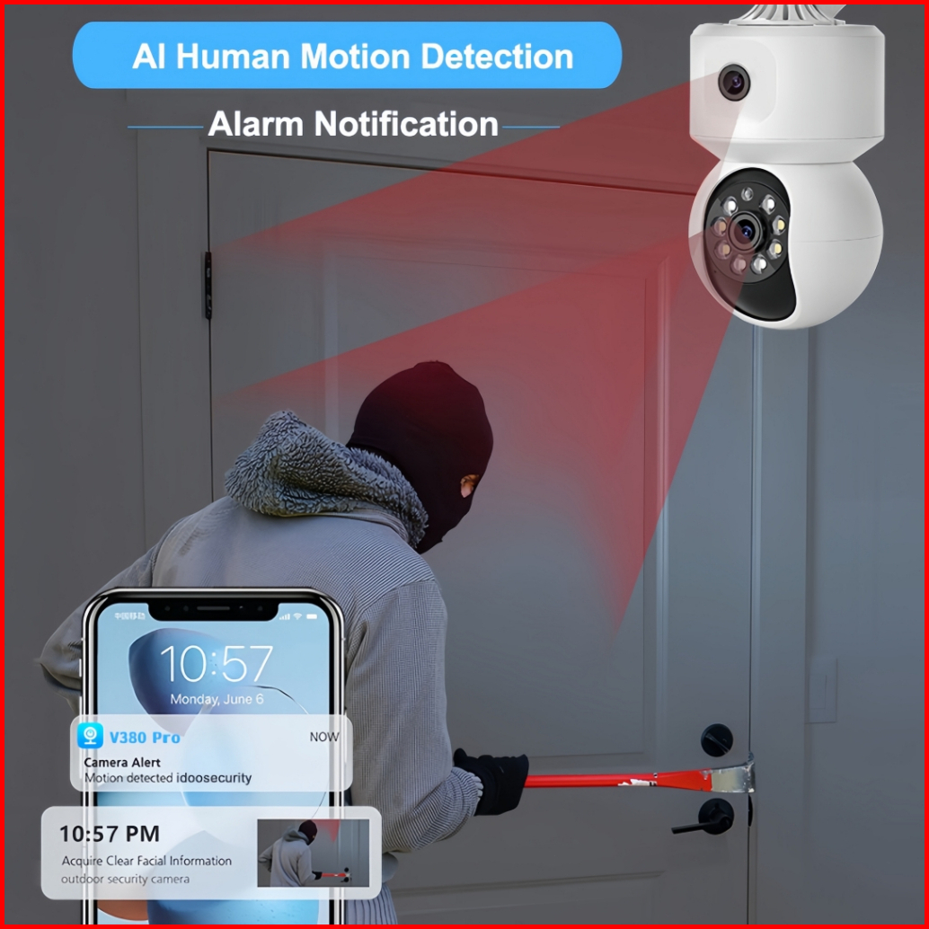 Goode V380 Pro Dual Lens Two Direction Wifi Connection 360 Motion Detect Two Way Audio Security Cam