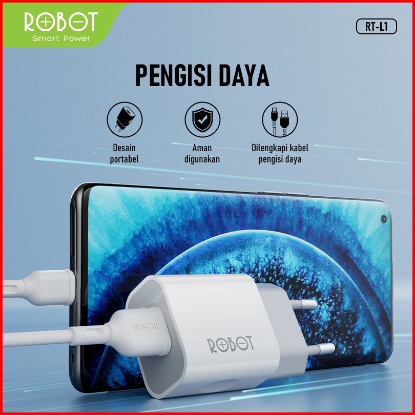 Robot Charger Compatible Iphone 11 13 Single Port Quick Charging Original Micro Usb Adapter Rt-l1 Garansi 1 Tahun