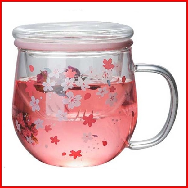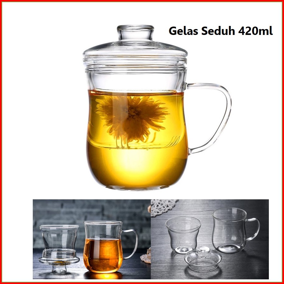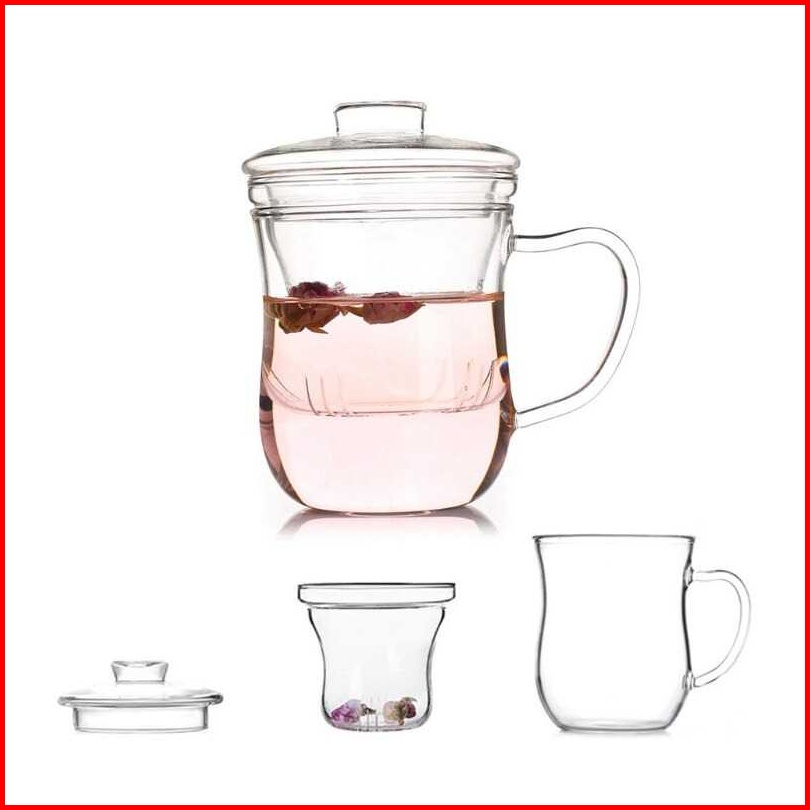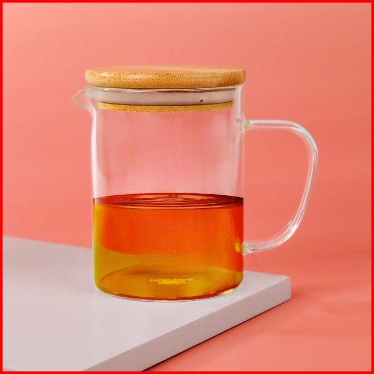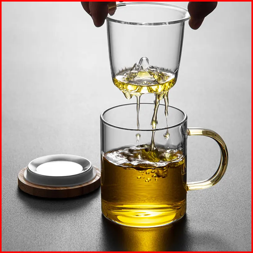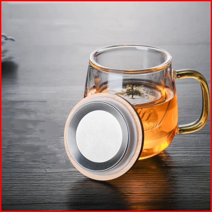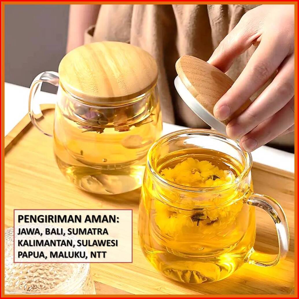Mug Cangkir Gelas Kopi Teh Set Saringan Infuser Tutup Kayu Gelas Kaca Unik Dengan Saringan Infuser Seduh Herbal Jamu