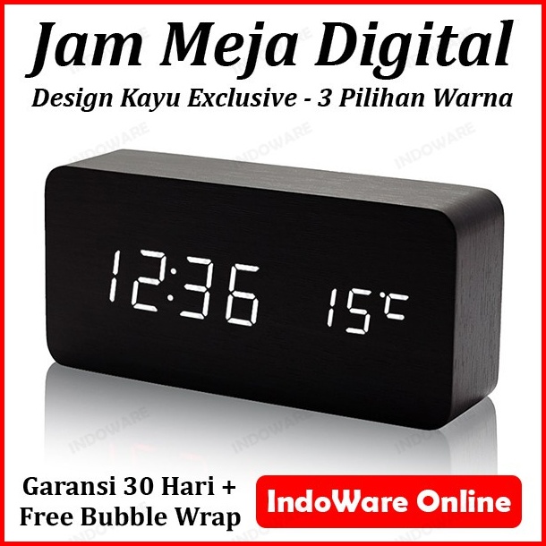 Jam Meja Kayu Led Digital Digital Wood Smart Alarm Clock