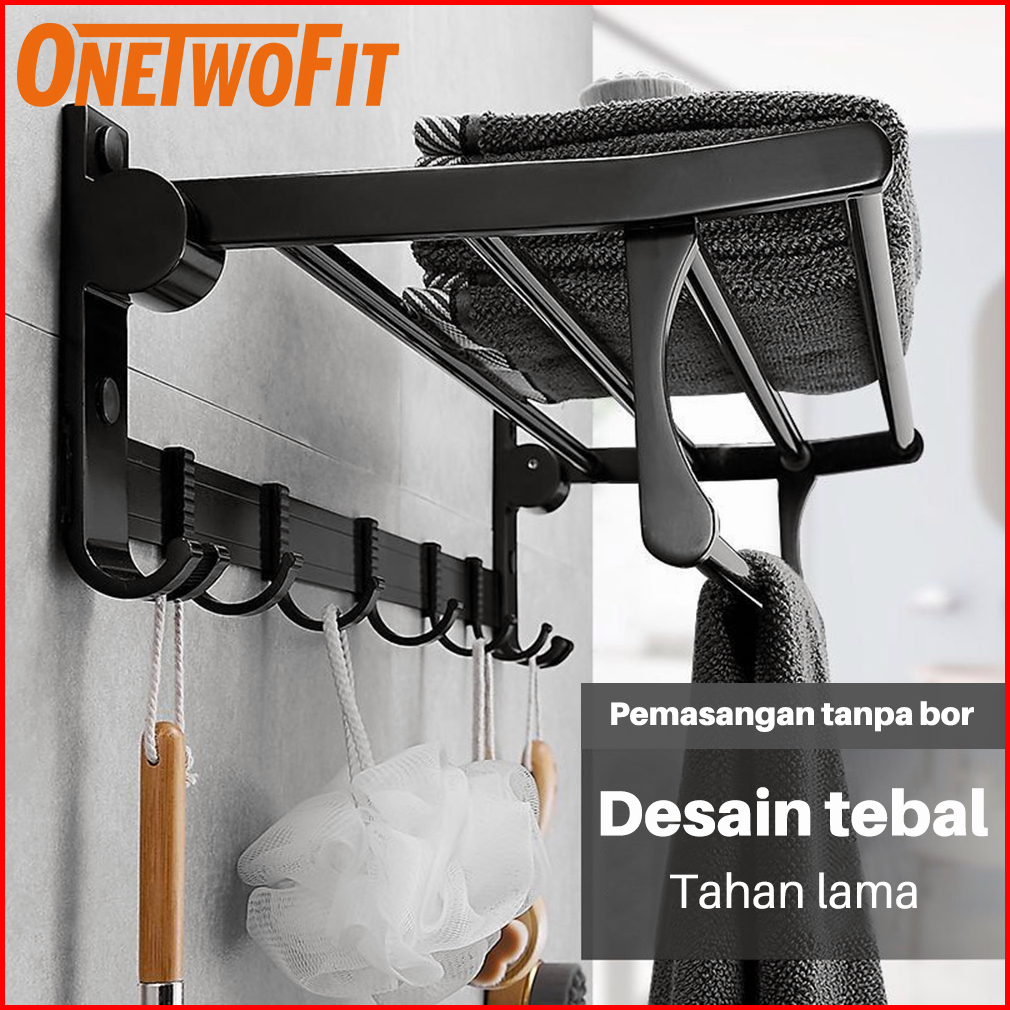 Onetwofit Rak Gantungan Handuk 50cm Rak Handuk Lipat Pemasangan Tanpa Bor