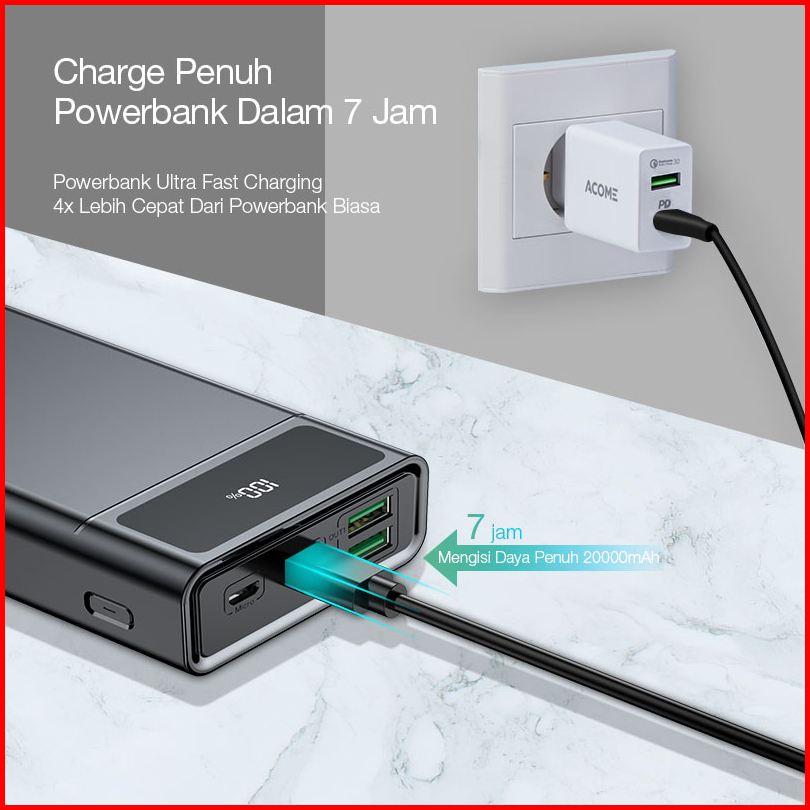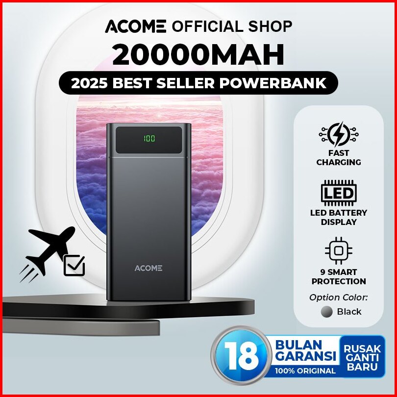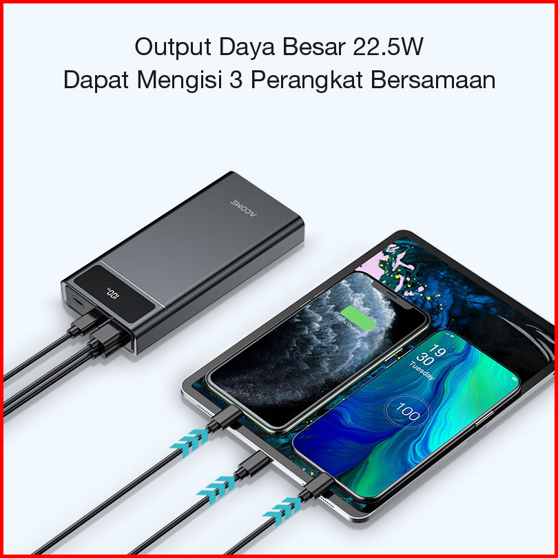 Acome Powerbank 20000mah Ap201 Fast Charging Led Display Dual Input Three Output Original For For Iphone Samsung Xiaomi