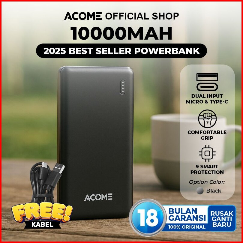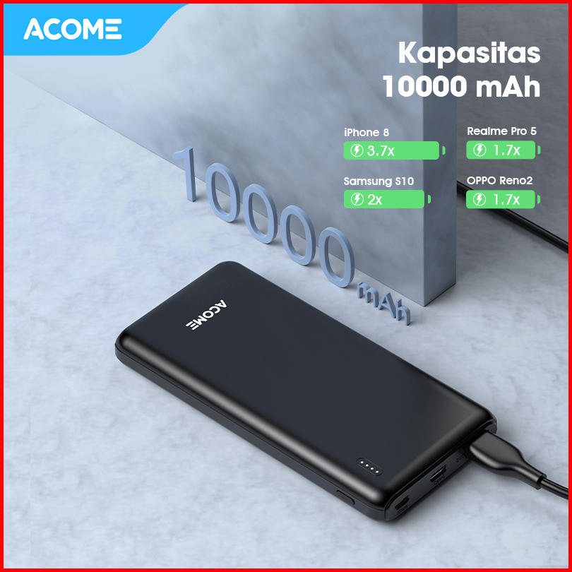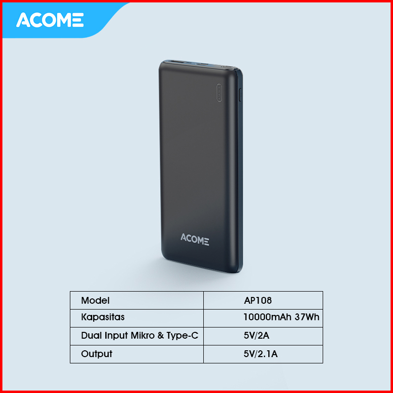 Acome Powerbank Pb 10000mah 2.1a Dual Port Micro Type-c Powerbank Travel Friendly Original Ap108 Acome Powerbank 10000ma