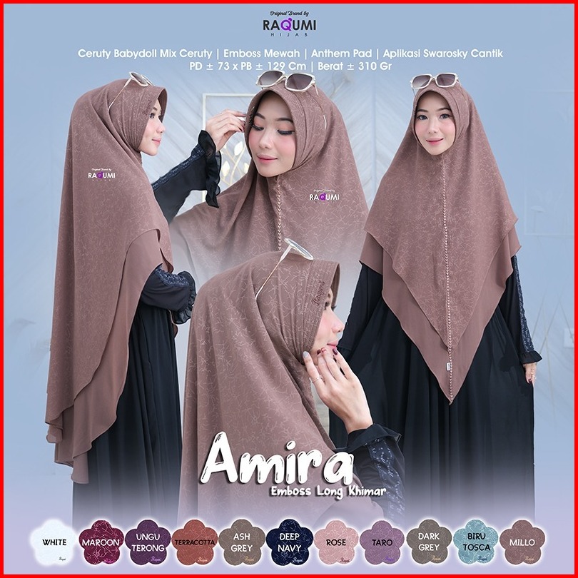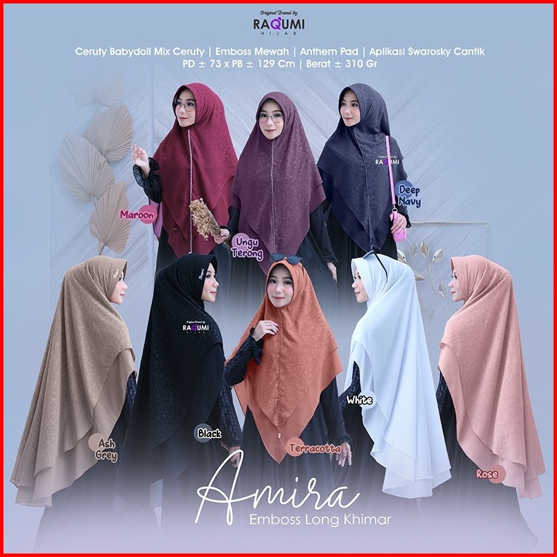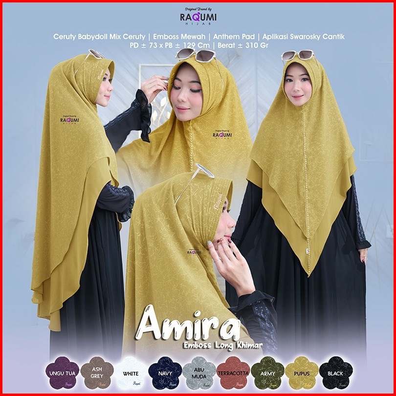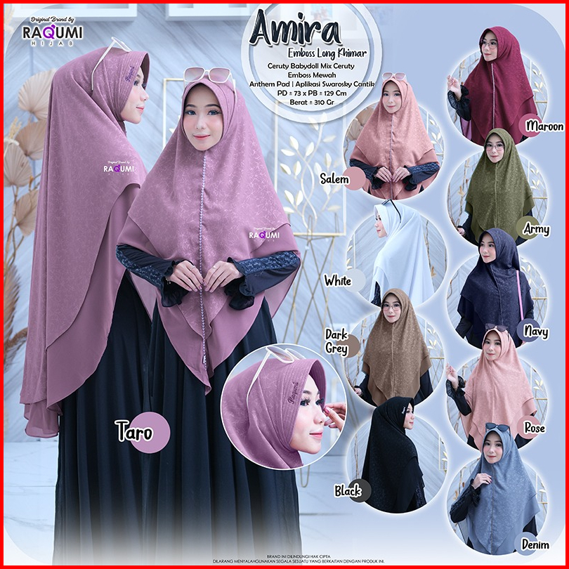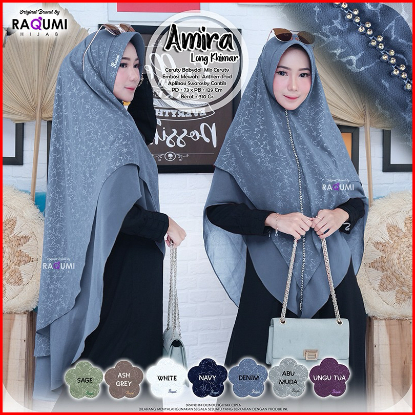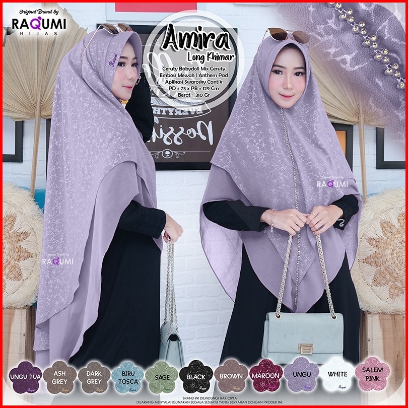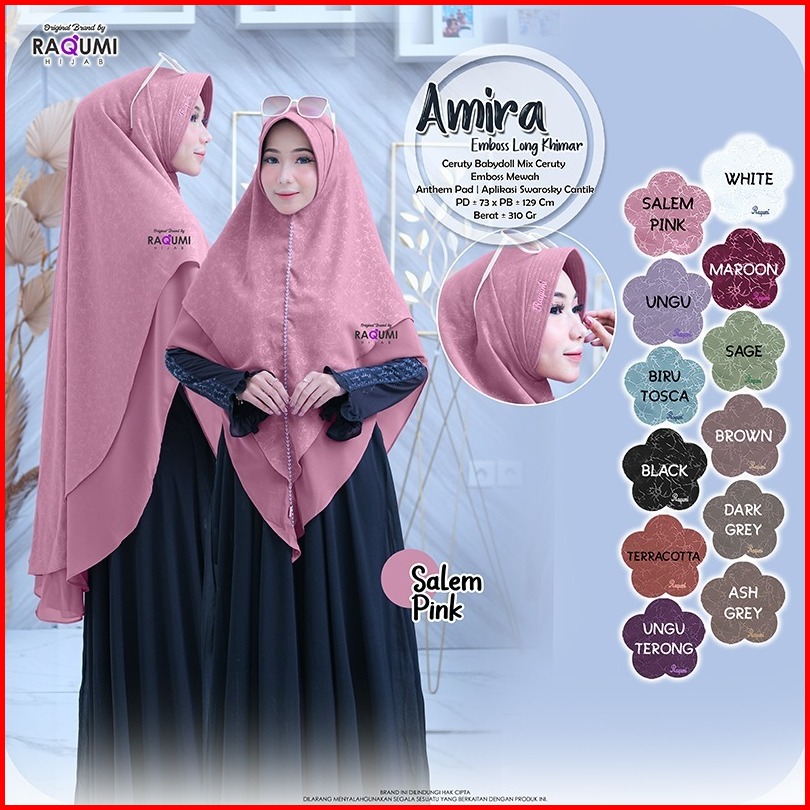 Amira Long Hijab Original Raqumi Khimar Ceruty Babydoll Emboss Mewah Khimar Anthem Amira Raqumi Hijab