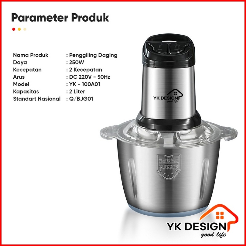 Yk Design Yk-100a01 Blender Penggiling Daging Serbaguna Meat Grinder Chopper 2l Blender Chopperdaging