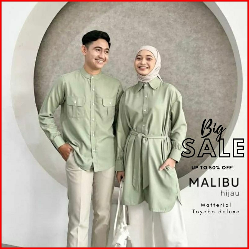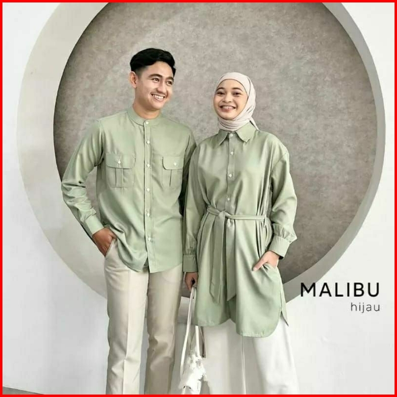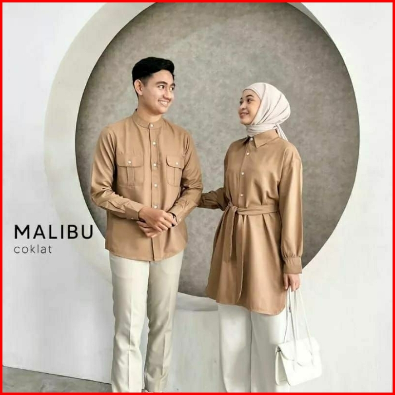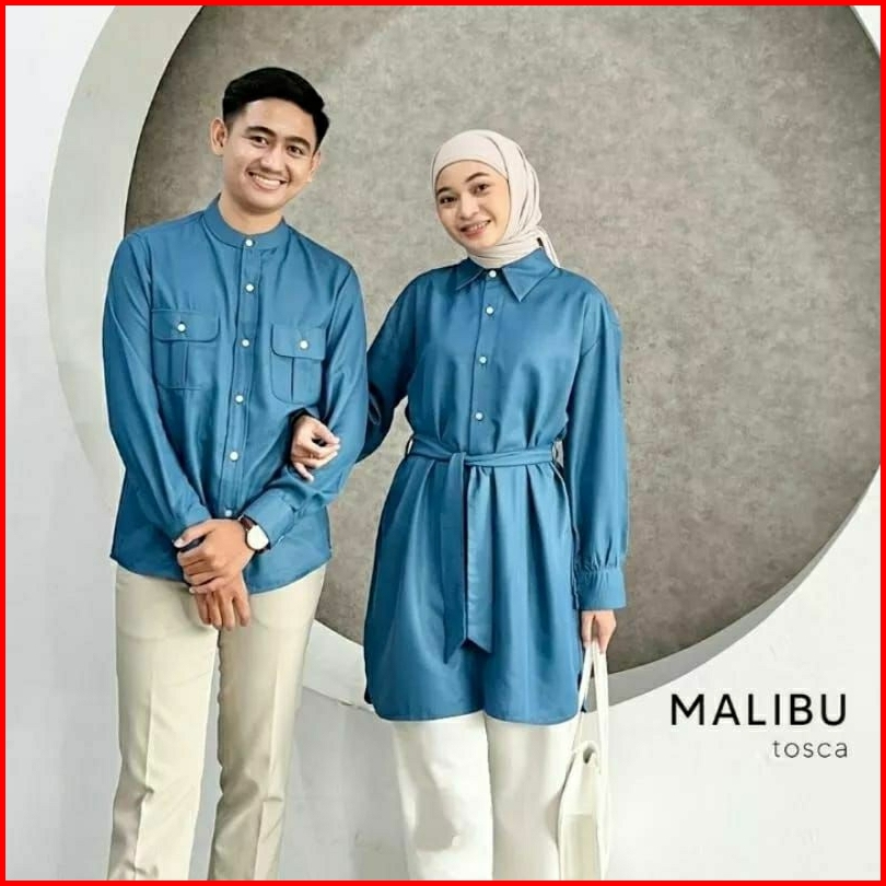 Baju Couple Pasangan Malibu Tunik Dan Kemeja Bahan Toyobo Deluxe