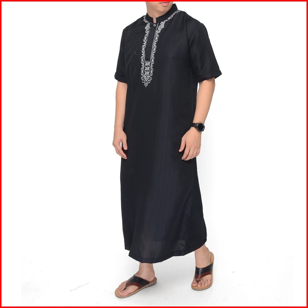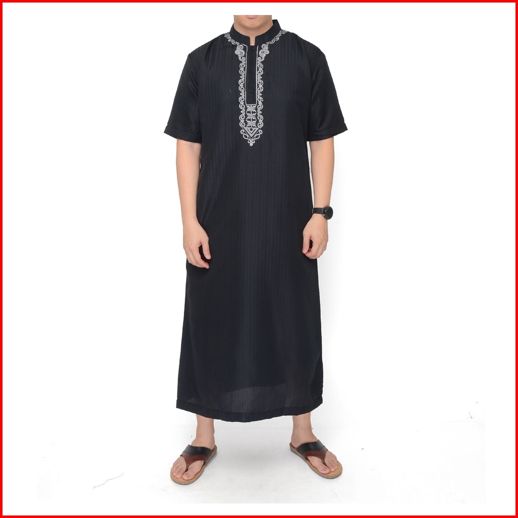 Jubah Gamis Pria Dewasa Hitam Pendek Bordir Jp01 Free Peci