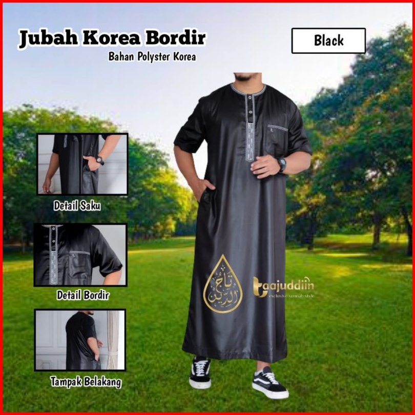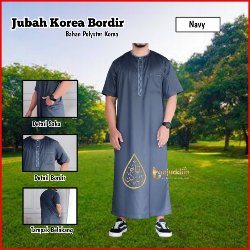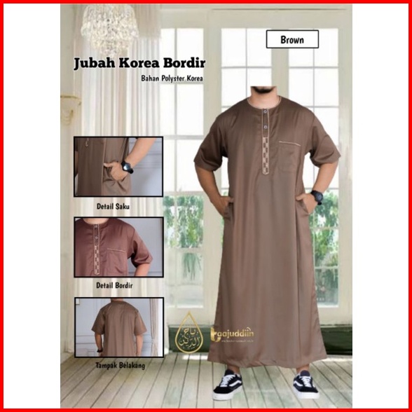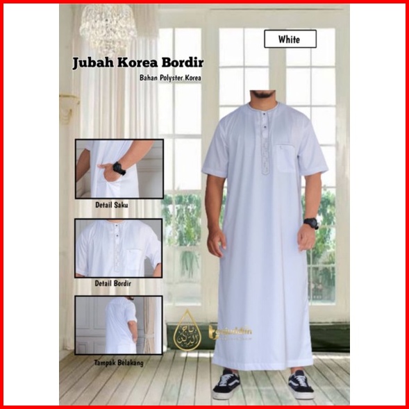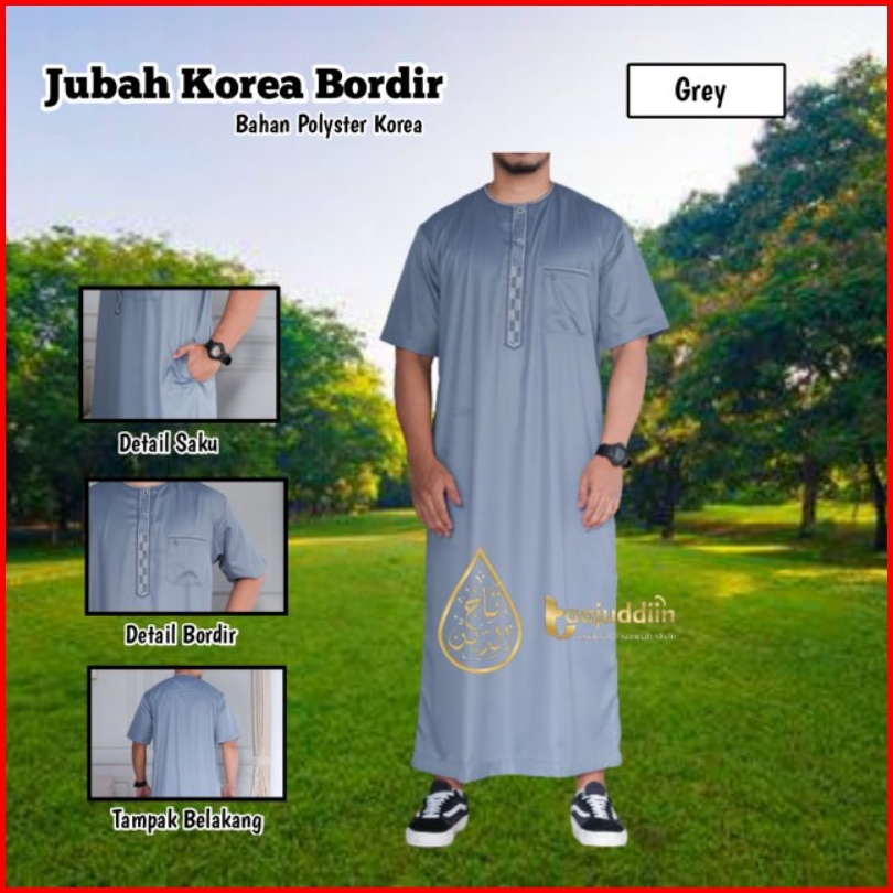 Gamis Pria Oblong Jubah Lengan Pendek Tanpa Kerah Polyster Korea Taajuddiin Jubah Pria Dewasa