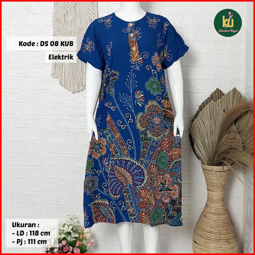 Daster 08 Kencana Ungu Lebel Biru Daster Batik Kencana Kancing Busui Lengan Pendek Ld.120 Cm Pb.115 Cm Baju Santai Wanit