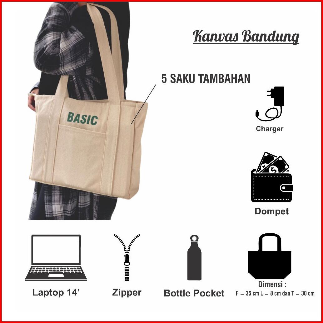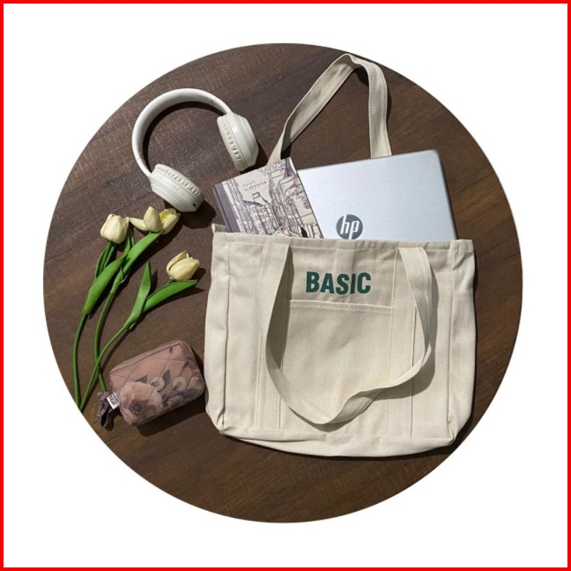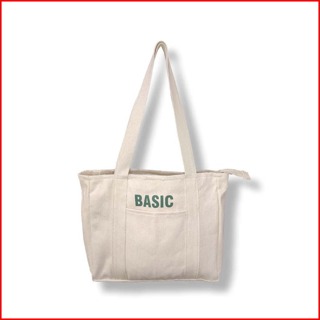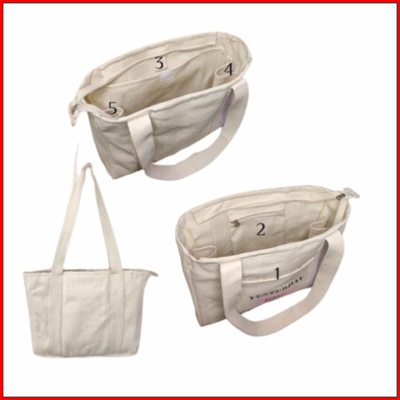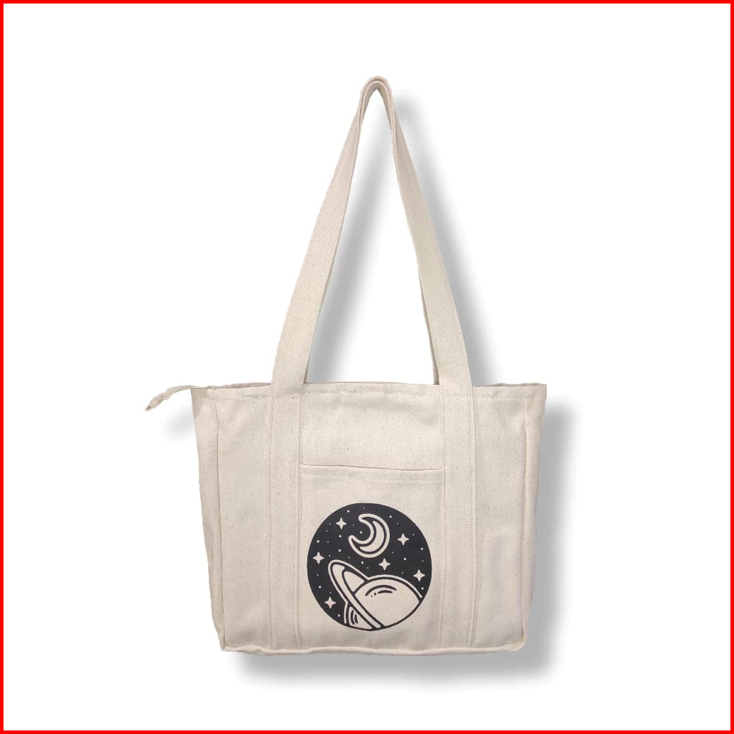 Tote Bag Kanvas Aesthetic Resleting Tas Bahu Wanita Atau Pria Totebag Untuk Kuliah Premium