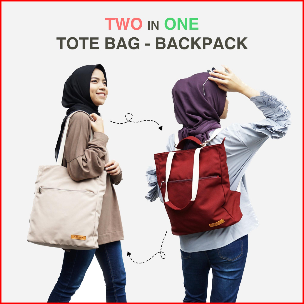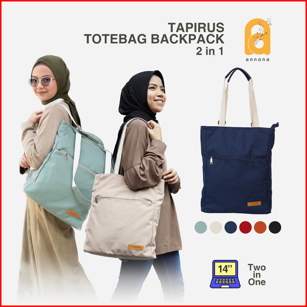 Annona Totebag Ransel Wanita Resleting Kanvas Totepack 2 In 1 Multifungsi Laptop 14 Inch Tapirus