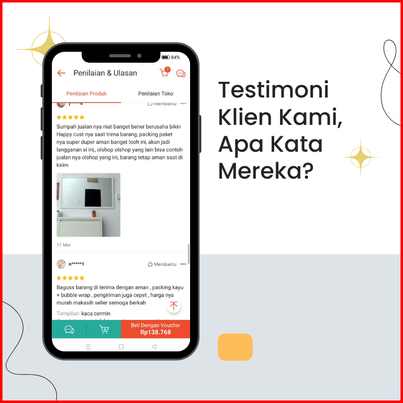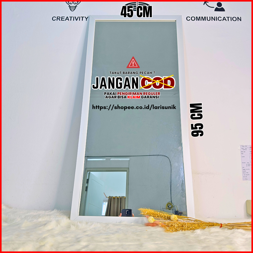Cermin Kaca Gantung Tempel Dinding Panjang Full Body 45 X 95 Cm Kamar Mandi Tidur Mirror Aesthetic Besar Kotak Persegi F